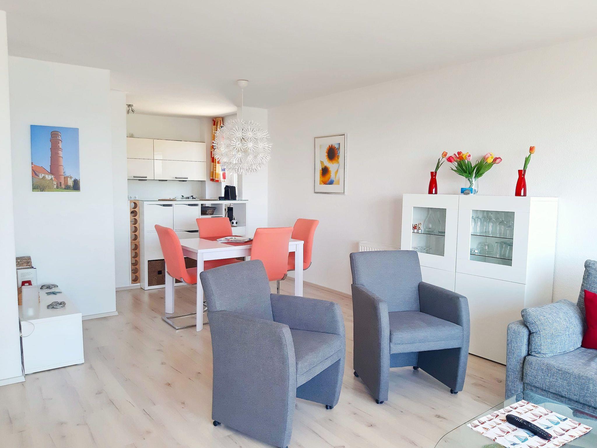 2-Zimmer-Ferienwohnung, 3. OG, ca. 65 m² mit direktem Meerblick.