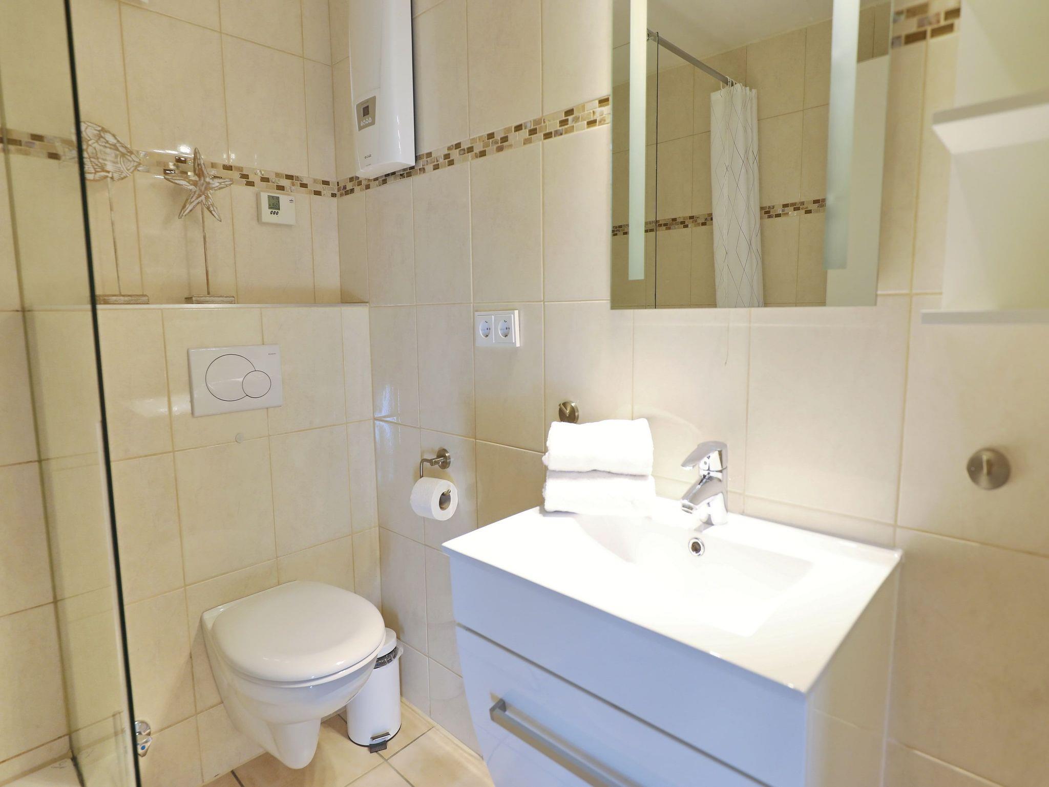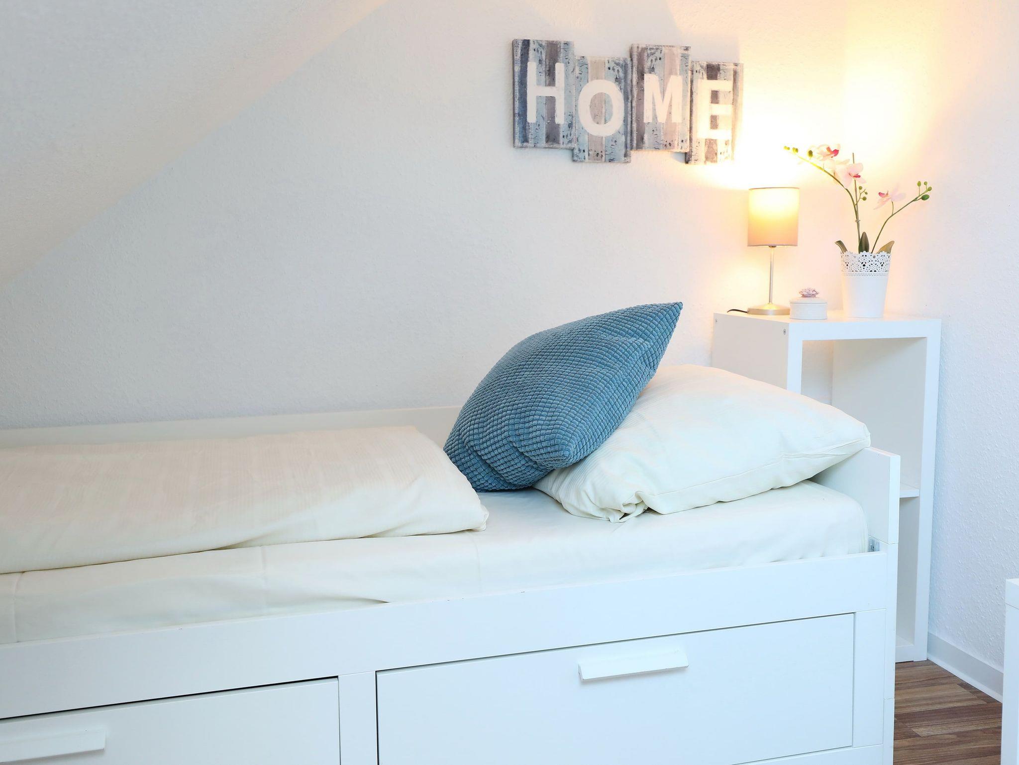 Balkon, offene Küche, Geschirrspüler, Duschbad/WC, Fön, Gäste-WC, Waschmaschine im Gemeinschaftskeller, TV, kostenloses W-Lan, zwei Schlafzimmer KFZ-Außenstellplatz