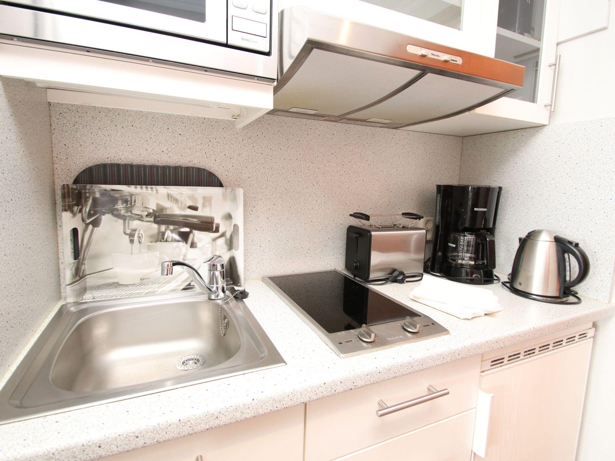 Balkon, Küchenzeile, Mikrowelle, Duschbad/WC, Fön, TV, Stereoradio mit CD, Aufzug