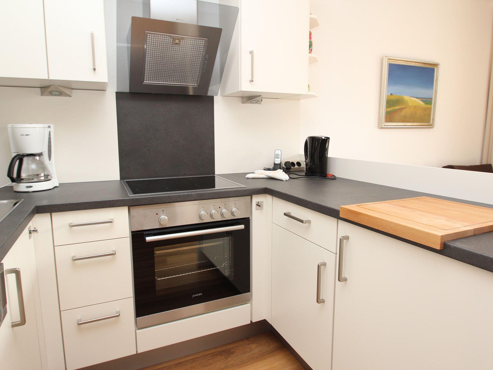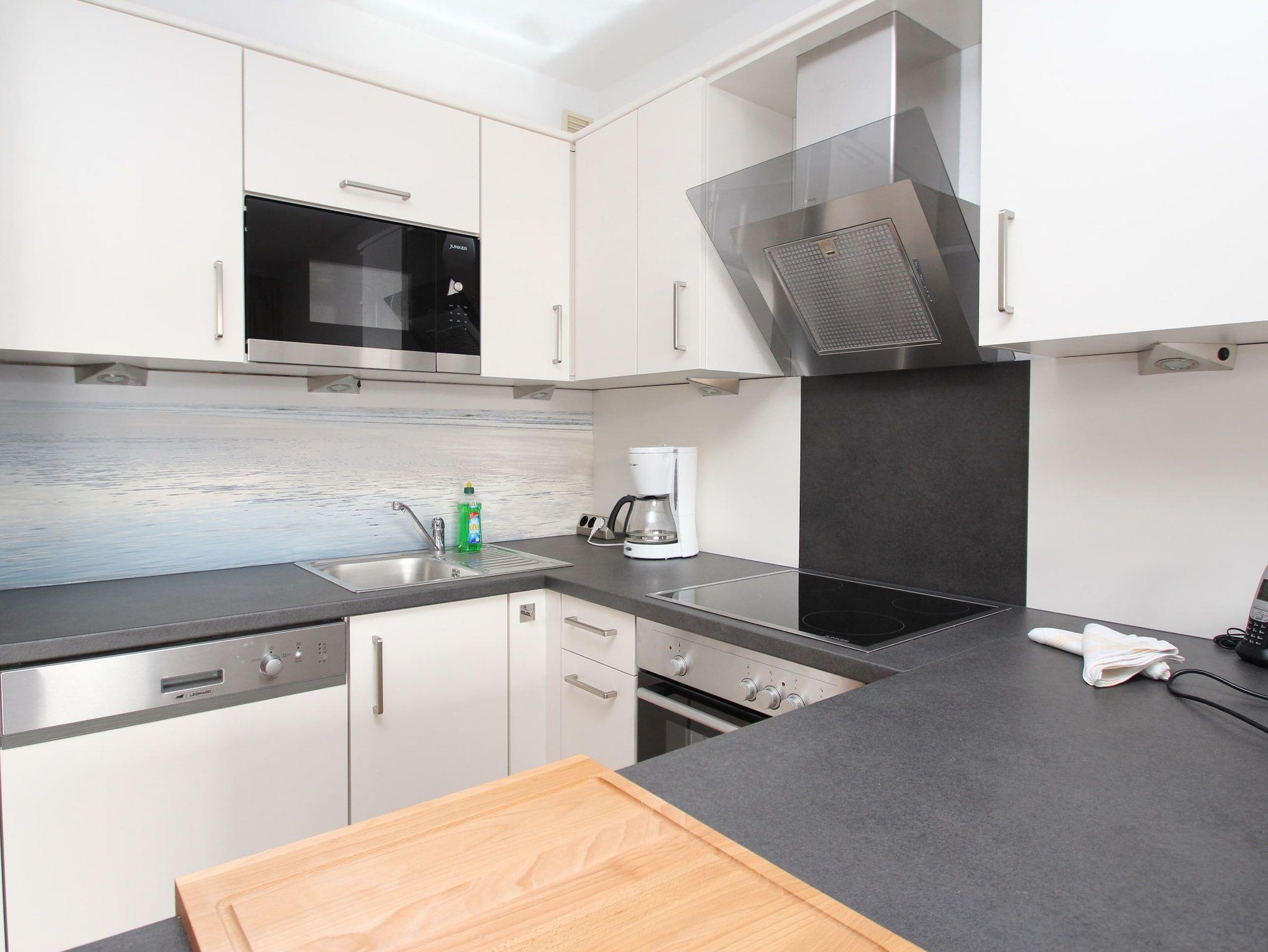 Diese Ferienwohnung befindet sich in der Endtage einer ruhigen, gepflegten Wohnanlage in unmittelbarer Nähe vom Strand und lädt von Anfang an zum Wohlfühlen ein. Im hellen Wohnbereich finden Sie eine gemütliche Sitz-/Schlafcouch (140 cm x 200 cm) mit Beistelltisch, eine großzügige Essecke und einen Einbaukleiderschrank. Die neuwertige, offene Einbauküche lässt keine Wünsche offen. Im abgetrennten Schlafbereich befinden sich zwei komfortable Boxspringbetten (1x 90 cm x 200 cm / 1x 100 cm x 200 cm), die als Doppelbett, sowie als Einzelbetten zu nutzen sind. Gerne können Sie bei Ihrer Buchung Ihren Bettenwunsch äußern. Abgehend vom Flur erreichen Sie das moderne Duschbad und das separate WC. Genießen Sie Ihr Frühstück bei Sonnenschein auf dem Balkon und die herrliche Umgebung am Strand.