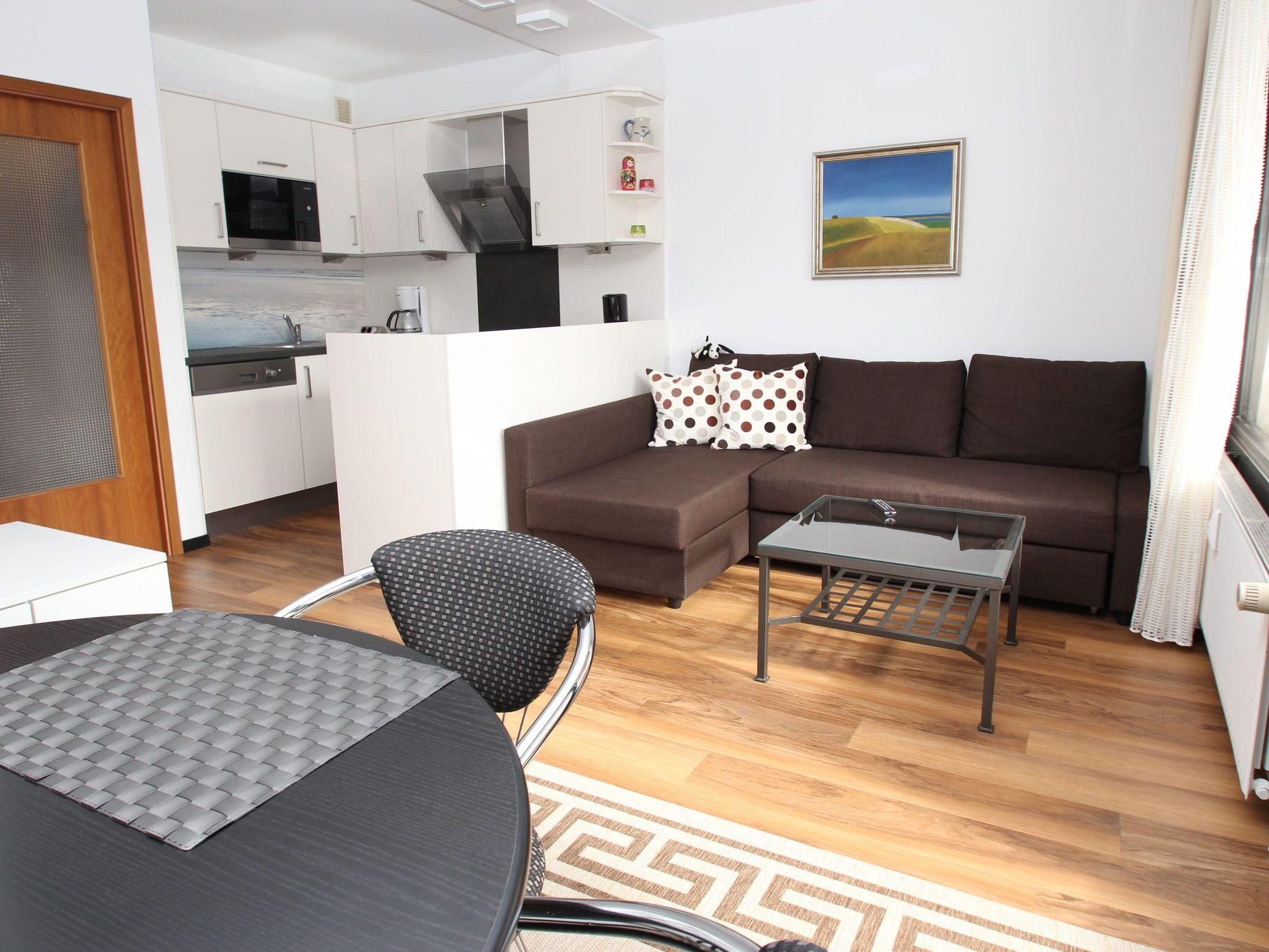 1 1/2-Zimmer-Ferienwohnung, 3. OG, ca. 40 m² mit Blick zur Grünanlage.