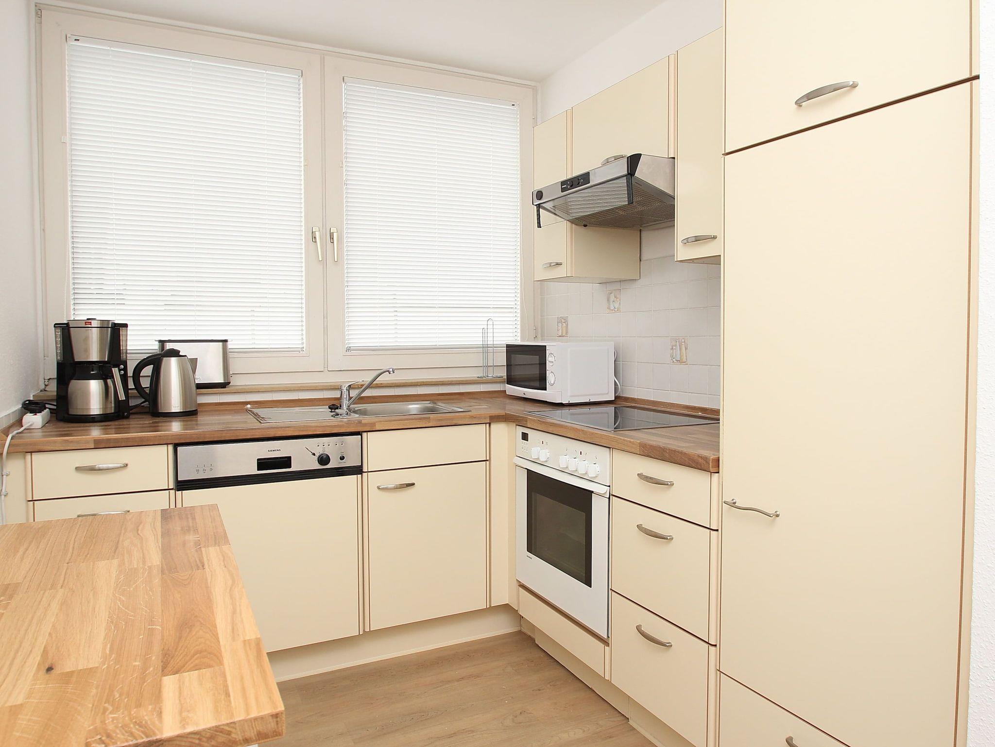 Dieses empfehlenswerte Feriendomizil gehört mit seiner Lage direkt an der Trave zu den absoluten Highlights. Hier verbringen Sie eine unvergessliche Zeit! Vom Eingang gelangen Sie in den großen Flur, von dem alle Wohnräume sowie auch die Küche mit Einbauschränken abgehen. Im Wohnzimmer stehen eine Couch mit Tisch, ein Sessel, eine Glasvitrine und ein Esstisch mit Stühlen. Außerdem hat die Wohnung zwei Schlafzimmer mit jeweils einem Doppelbett (2x 90 cm x 200 cm) und einem Kleiderschrank. Das Bad ist hell gefliest und beinhaltet eine Badewanne und eine Dusche. Vom sonnigen Balkon, den Sie vom Wohnzimmer erreichen, genießen Sie im Zentrum Travemündes die frische Seeluft und können aus nächster Nähe alle Schiffe beobachten.