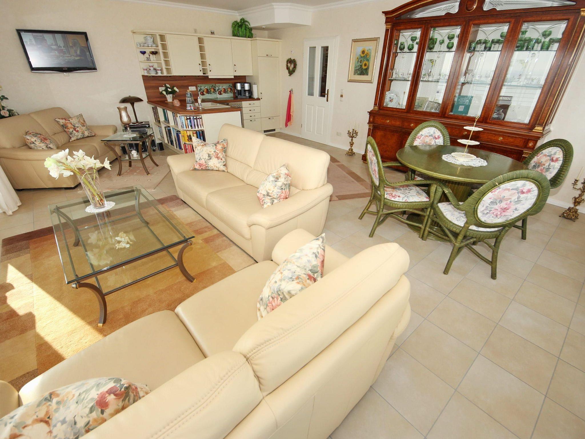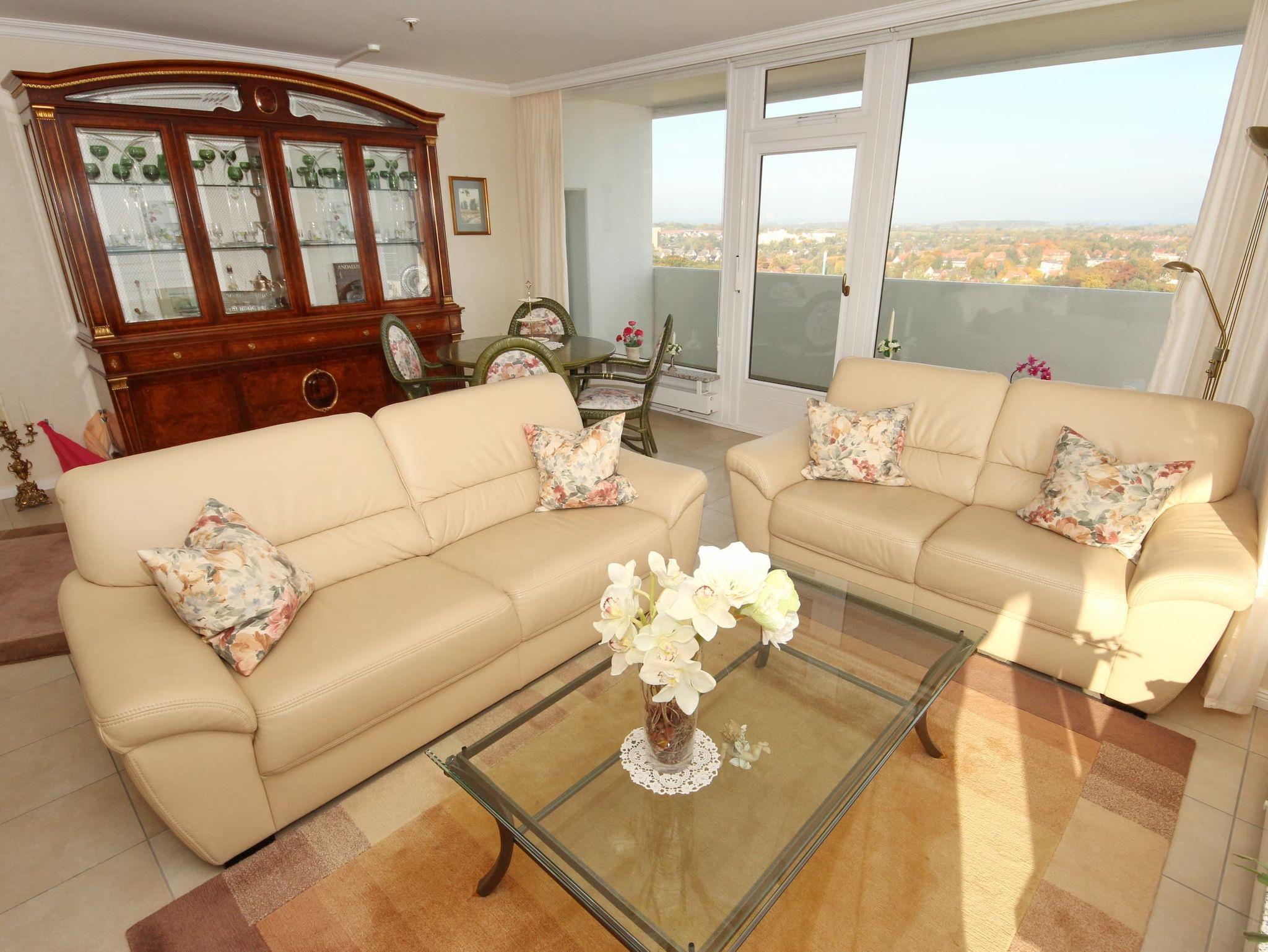 Umlaufende Loggia von ca. 26 m², Küche, Geschirrspüler, Duschbad/WC, Fön, Waschmaschine, 2x TV, DVD, kostenl. W-Lan, Aufzug, inkl. Tiefgaragenstellplatz (Einfahrtshöhe: 1,85 m).