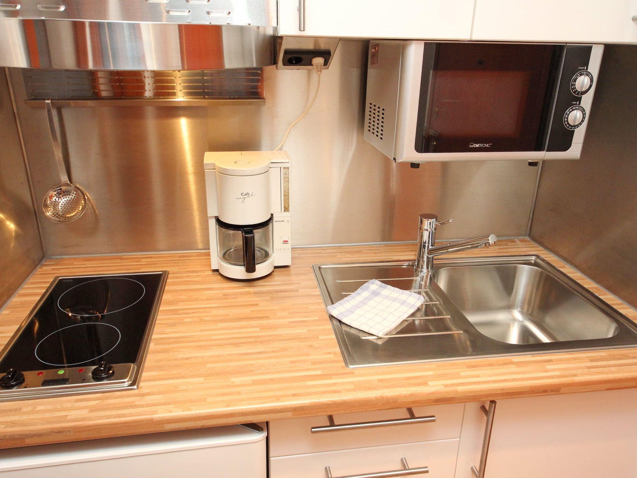 Balkon, Küchenzeile, Mikrowelle, Vollbad/WC, Fön, TV, Stereoradio mit CD, Aufzug.