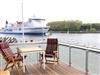 Hier wohnen Sie direkt an der Trave in einer komplett sanierten Ferienwohnung. Sie können von zwei sonnigen Dachterrassen die ein- und ausfahrenden Fährschiffe beobachten und den faszinierenden Blick die Trave hinunter auf die Ostsee genießen. Beim betreten der Wohneinheit empfängt Sie das lichtdurchflutete Wohnzimmer, das mit einer bequemen Couch, einem Sessel mit Hocker und einem Tisch sowie einer schönen Essecke ausgestattet ist. Die offene Küchenzeile ist ebenfalls im Wohnzimmer integriert. Das Schlafzimmer, durch eine Schiebetür zum Wohnbereich abgetrennt, verfügt über ein komfortables Doppelbett (2x 90 cm x 200 cm) und einen Einbaukleiderschrank. Vom Schlafzimmer gelangen Sie in das moderne Duschbad. Aktuelle Livebilder vom Ausblick dieses Feriendomizils sehen Sie auf den Webcams 3 und 4.