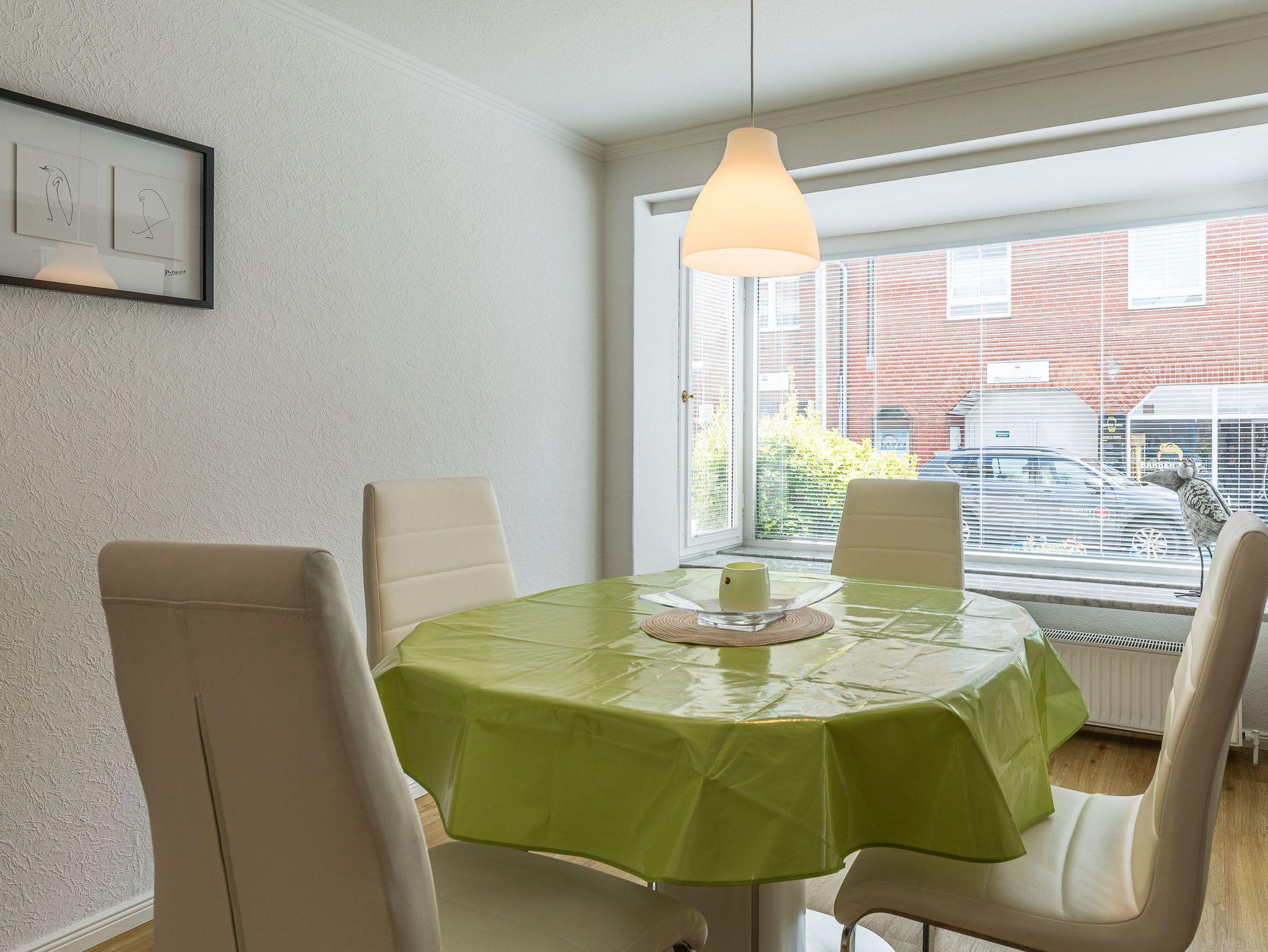 Dieses charmante Ferienhaus lädt zu einem ruhigen und erholsamen Urlaub mit der ganzen Familie ein. Der großzügige Rosengarten bietet ideale Voraussetzungen für entspannte Stunden im Grünen. Auch Bücherfreunde kommen auf ihre Kosten: Ein gut bestücktes Bücherregal steht für gemütliche Lesestunden bereit.