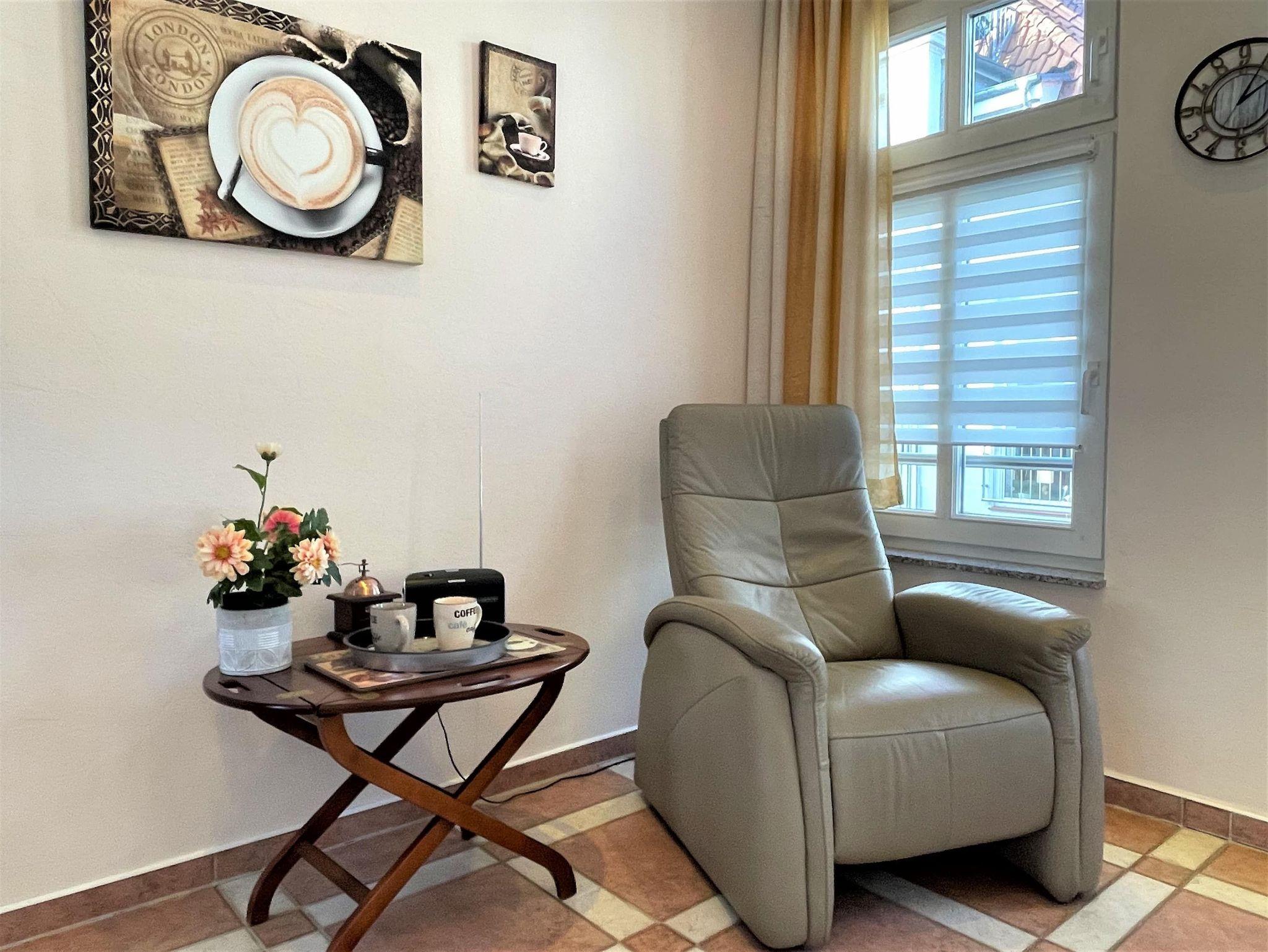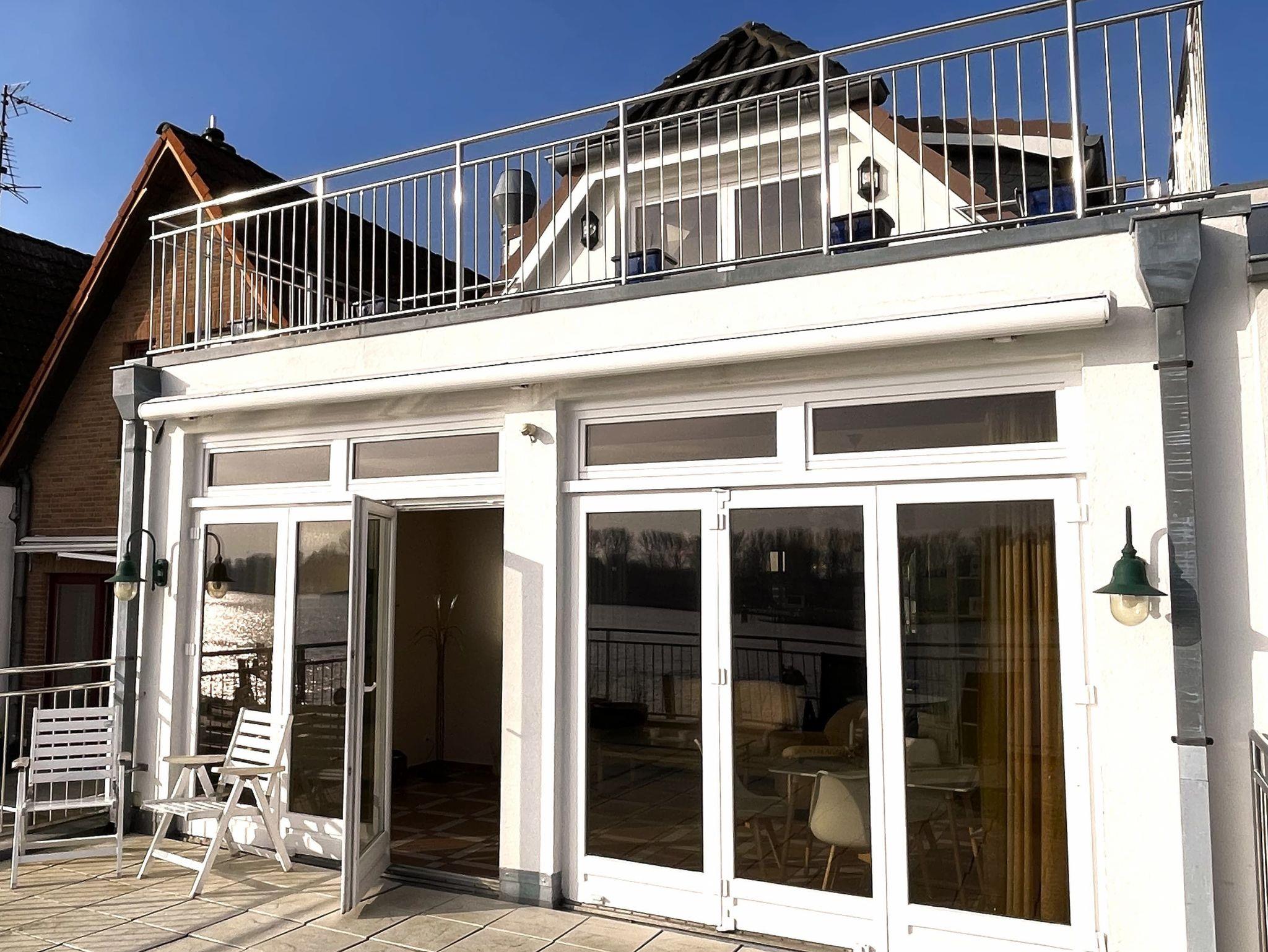2 Zimmer-Maisonette-Ferienwohnung, 1. OG, ca. 120m² mit zwei großen Sonnen-Terrassen und direktem Traveblick.