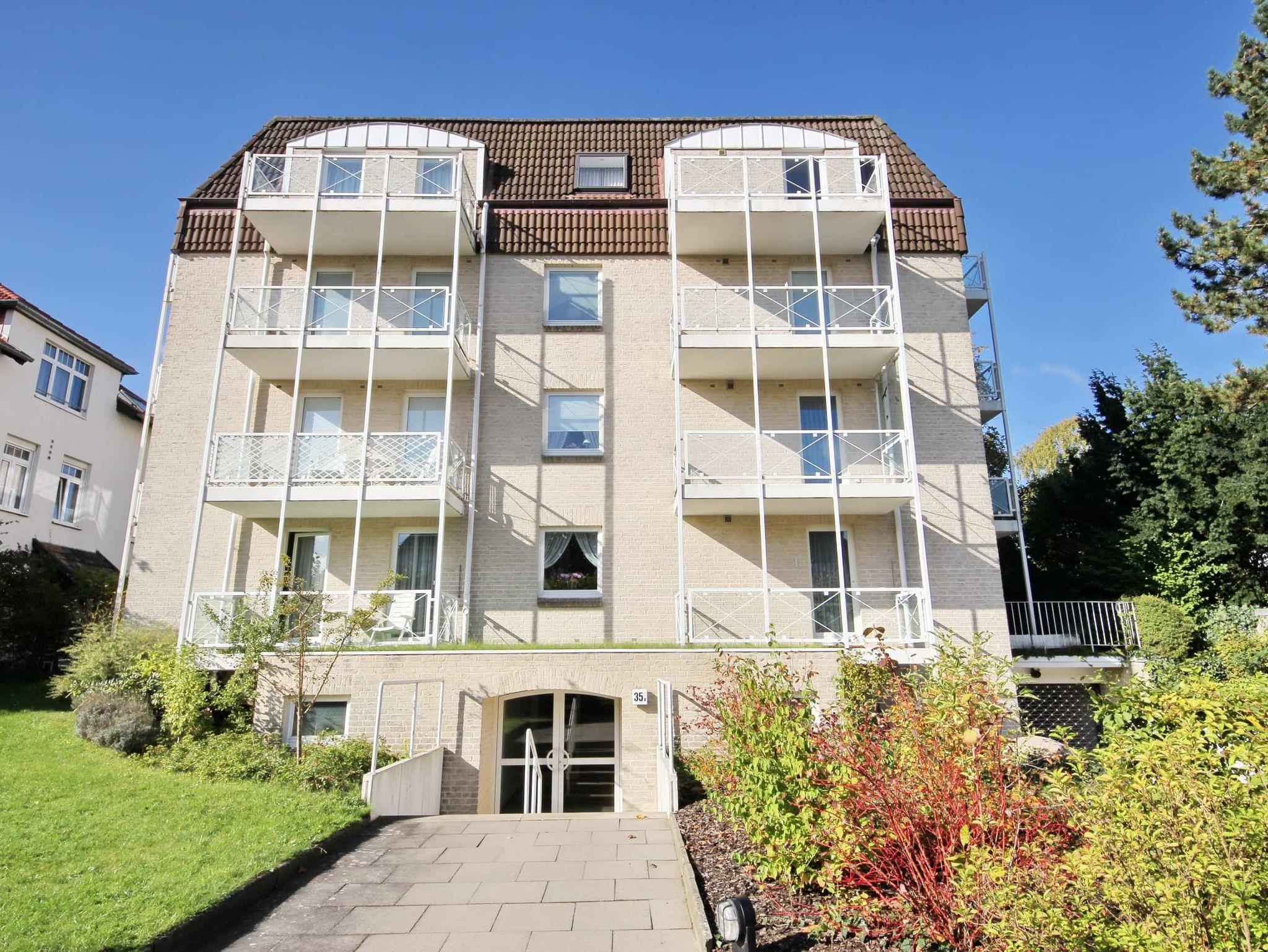 Dieses moderne und komfortable Appartement liegt in einer ruhigen, exklusiven Wohnanlage in der Kaiserallee. Die sehr schöne Einrichtung im Wohnzimmer, mit Zugang zur Terrasse, besteht aus einer gemütlichen Sitz-/Schlafcouch (120 cm x 200 cm) mit einem kleinen Tisch. Die offene Küche ist mit einer praktischen Essecke und einer Anrichte ausgestattet. Das Schlafzimmer, ebenfalls mit Terrasse, erreichen Sie vom Wohnzimmer. Hier befinden sich zwei bequeme Einzelbetten (je 100 cm x 200 cm) und ein Kleiderschrank. Das Bad, auch abgehend vom Wohnraum, ist neuwertig und ansprechend. Die individuellen Accessoires verleihen dieser Wohnung eine behagliche Atmosphäre zum Wohlfühlen. Beide Terrassen laden zum Relaxen ein und bieten einen Blick in die Gartenanlage.