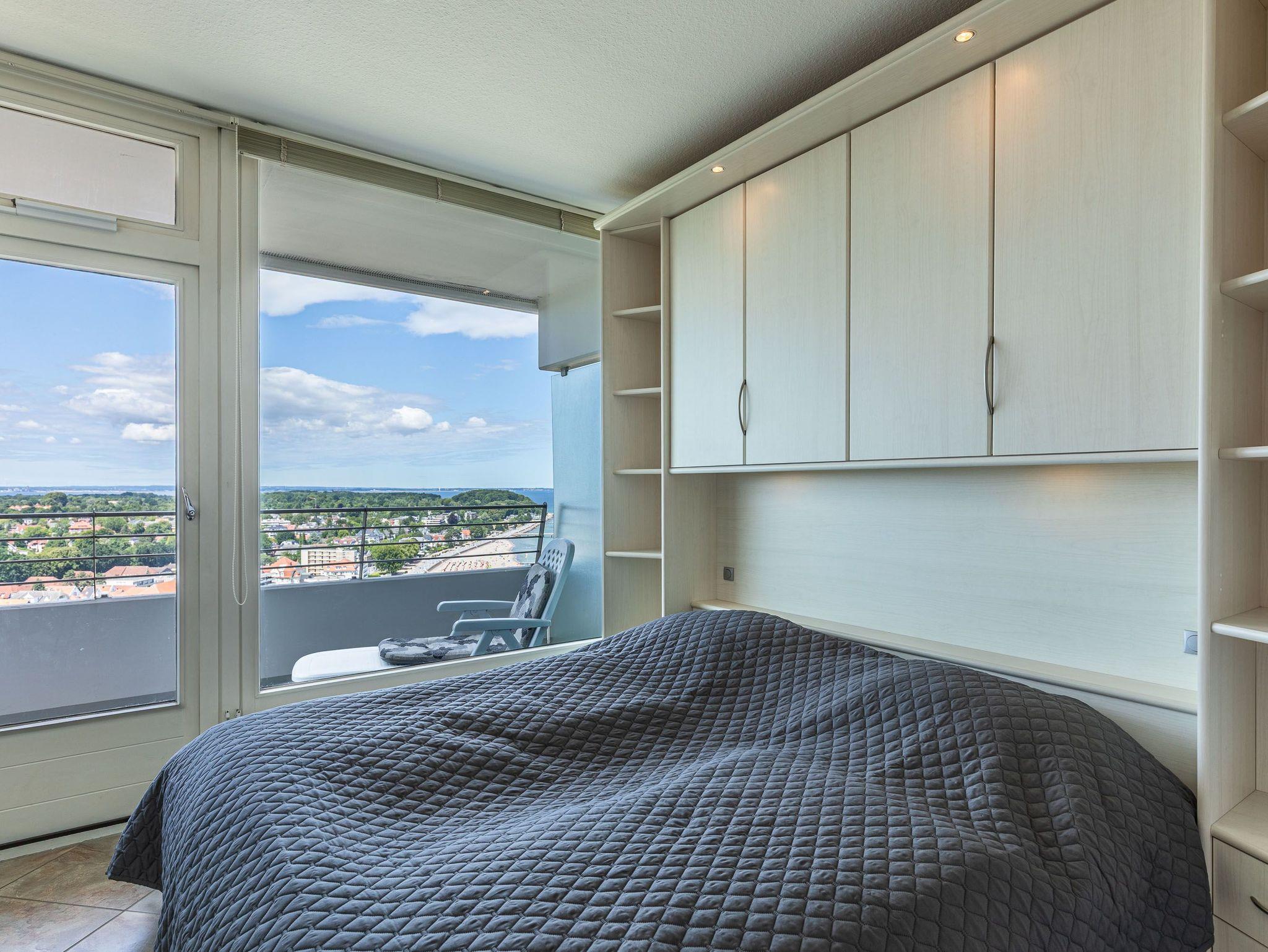 Exklusiv und neuwertig mit vielen Extras übertrifft dieses Appartement alle Erwartungen. Beim ersten Blick vom Flur ins Wohnzimmer werden Sie über die helle Eckcouch und den Glasvitrinenschrank mit eingebautem Elektrokamin staunen. Das separate Badezimmer ist in weiß gehalten sowie auch die vom Flur abgehende Küche mit Essecke und Stühlen. Im Schlafzimmer erwarten Sie ein komfortables Doppelbett (2x 90 cm x 200 cm), das in einem Einbauschrank mit Ablagen integriert ist und ein Kleiderschrank. Eine weitere Schlafmöglichkeit bietet ein Einzelschrankbett (90 cm x 200 cm), das sich neben der Einbauküche befindet. Das originelle Design ist eine gelungene Kombination aus modernem Stil und individuellem Charakter. Vom Wohn- und Schlafzimmer erreichen Sie den großen Balkon, um den herrlichen Ausblick auf den Strand und die Lübecker Bucht zu genießen.