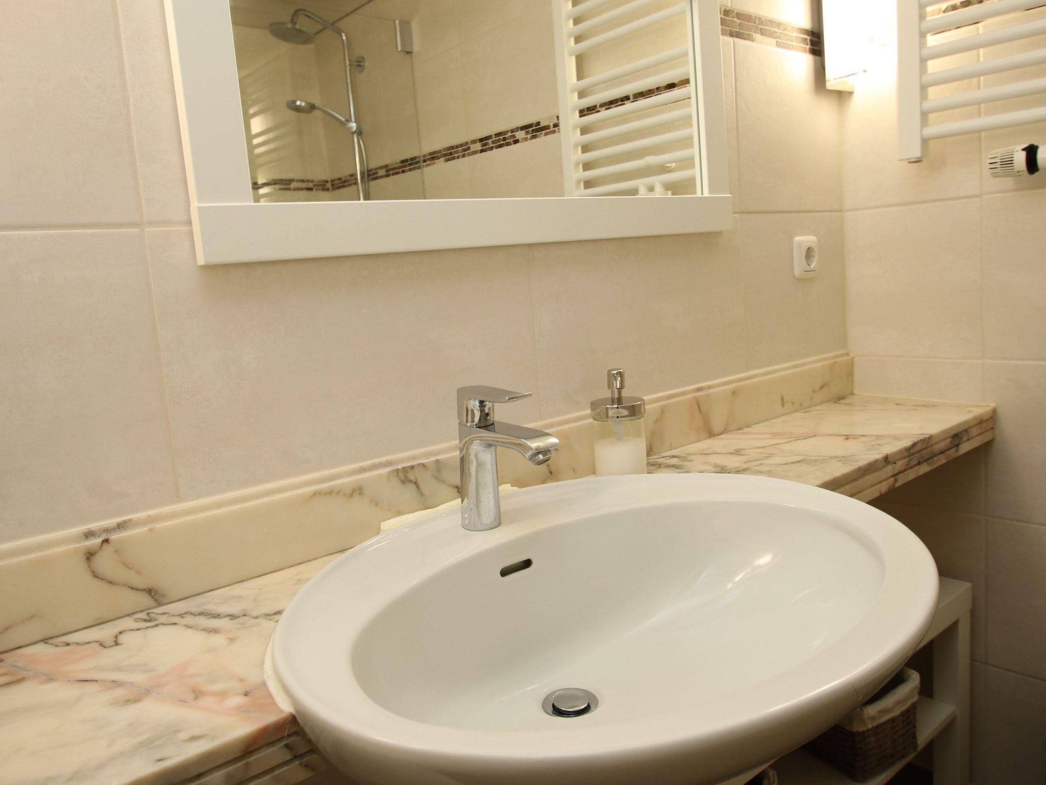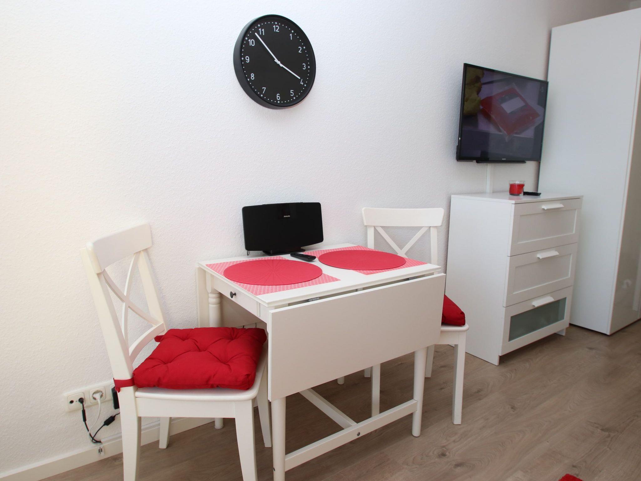 Balkon, elektr. Markise, Küchenzeile, Mikrowelle, Duschbad/WC, Fön, TV, Radio, Aufzug, inkl. Tiefgaragenstellplatz (Einfahrtshöhe: 1,85 m).
