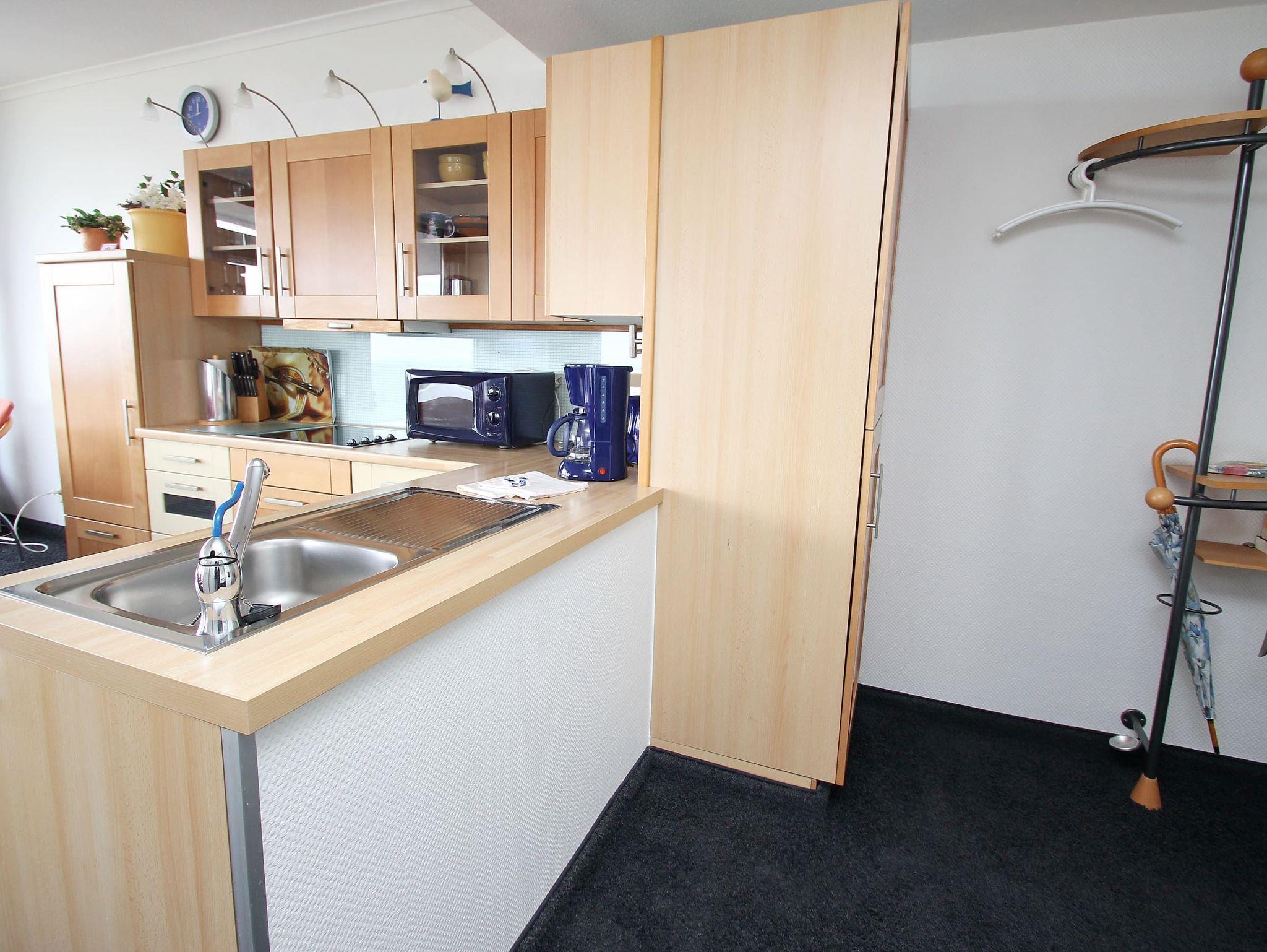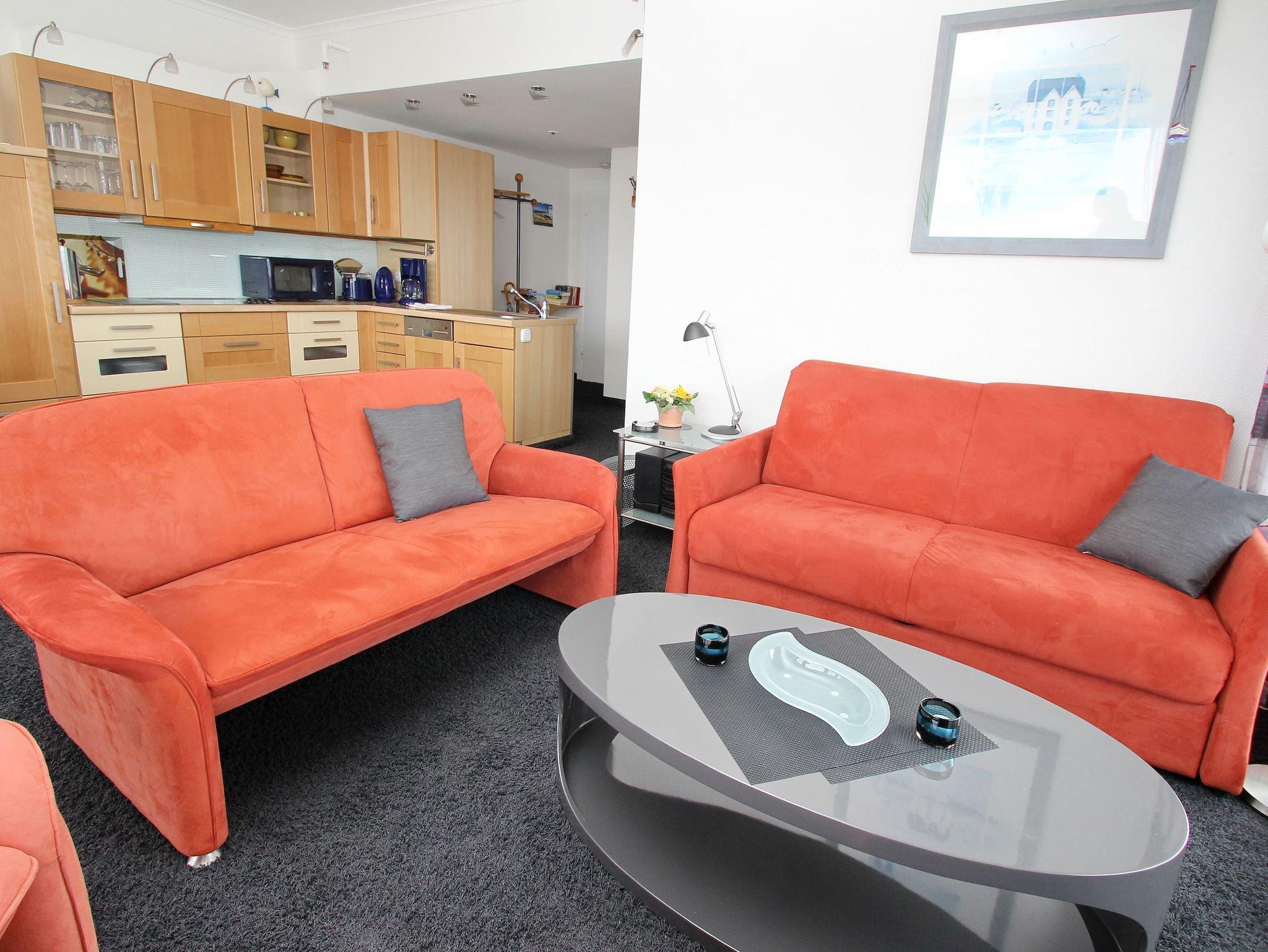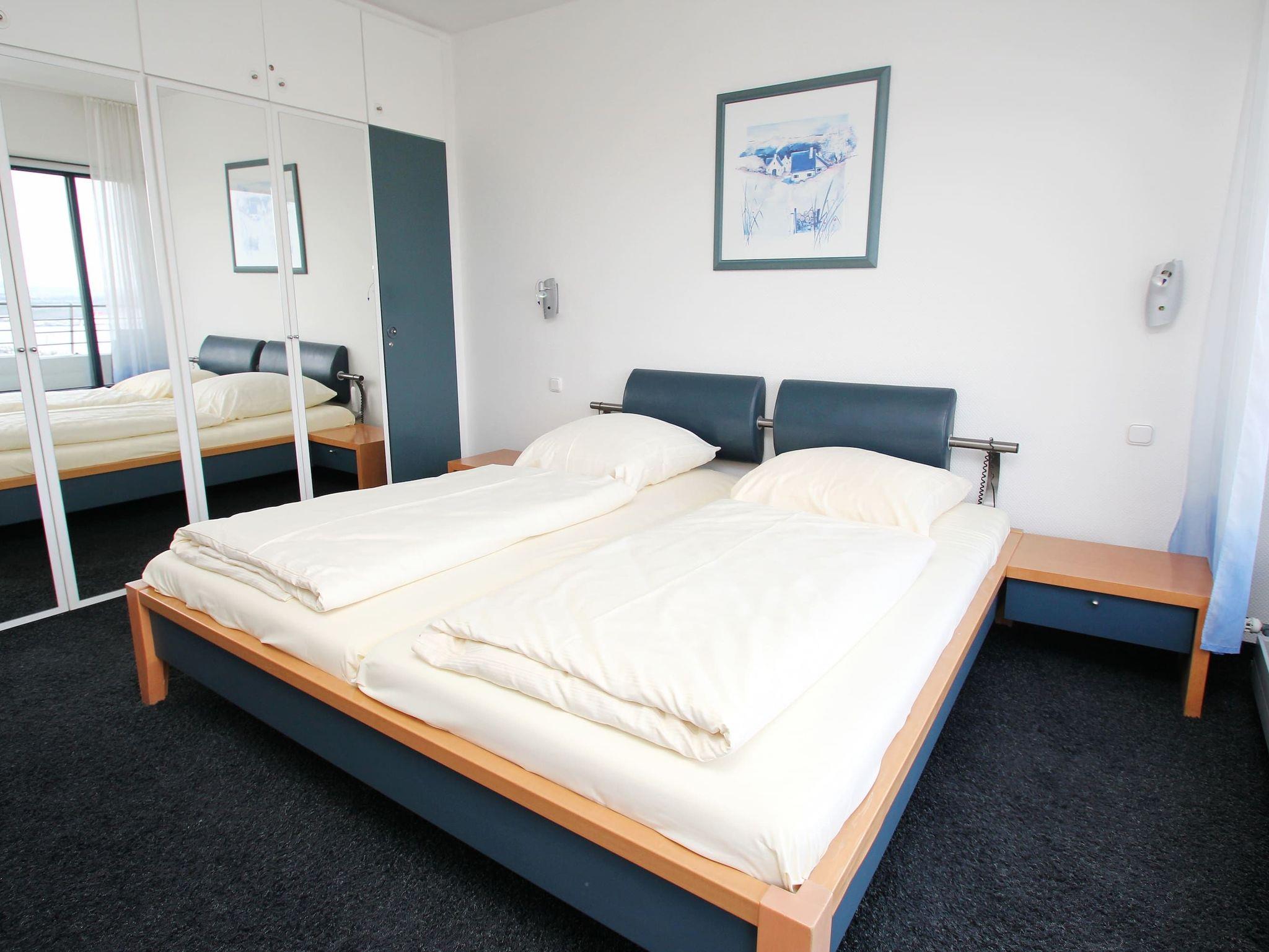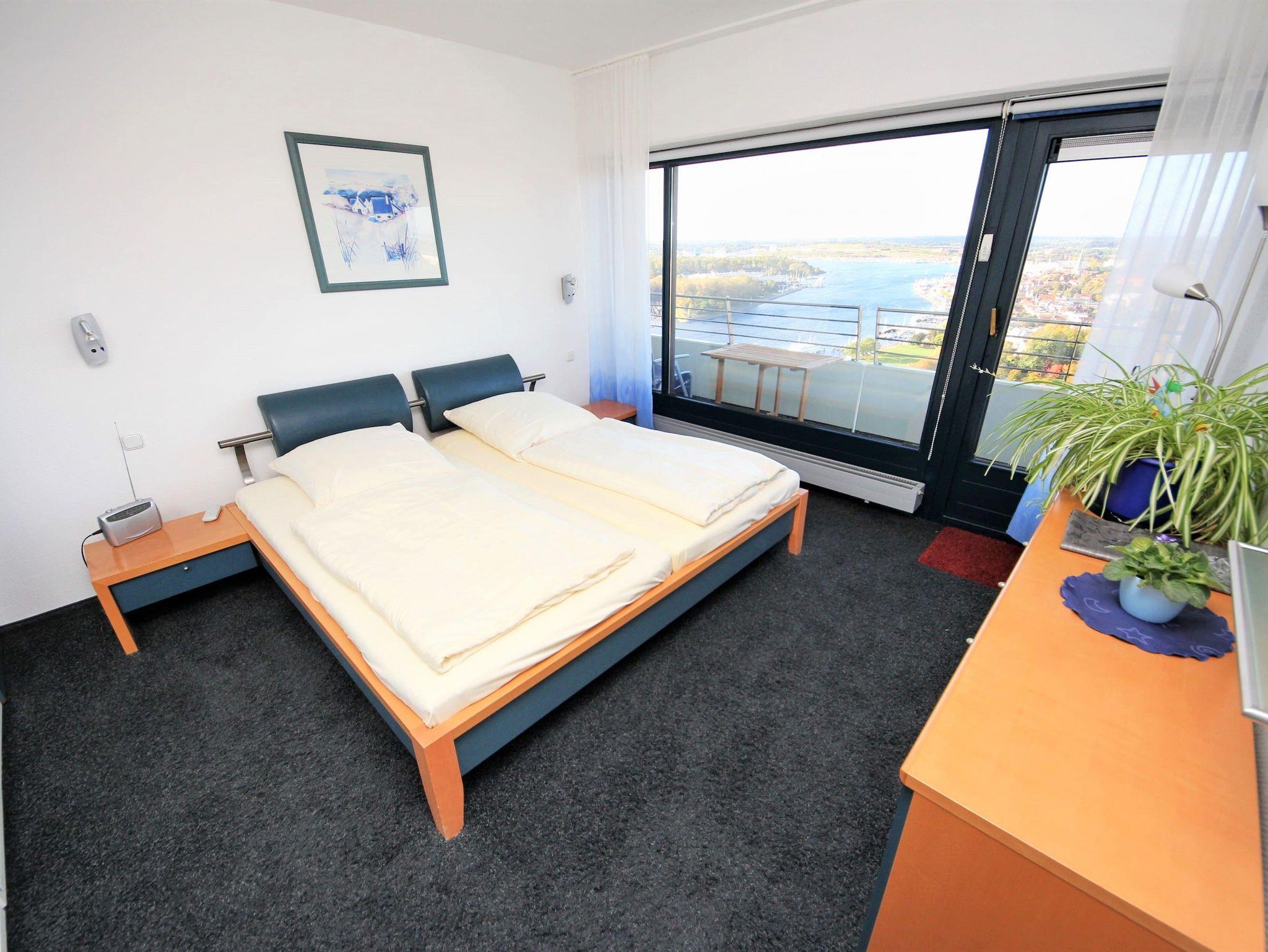 In diesem exklusiven, modernen Appartement wohnen Sie erster Klasse. Es entspricht allen Ansprüchen und lädt zum Wohlfühlen ein. Auch Ihr Vierbeiner ist in diesem Appartement herzlich willkommen. Der helle Wohnraum hat eine offene, moderne Einbauküche mit Essecke. Die weitere Einrichtung besteht aus einer komfortablen dreiteiligen Couchgarnitur und einem Tisch. Im Schlafzimmer stehen ein schönes Doppelbett (2x 100 cm x 200 cm) mit elektrisch verstellbarem Kopf- und Fußteil sowie ein großer Kleiderschrank mit Sideboard. Das moderne Duschvollbad erreichen Sie vom Flur. Von beiden Wohnräumen gelangen Sie auf den großen, sonnigen Eckbalkon, der Ihnen einen uneingeschränkten Panoramablick auf die Ostsee, die Altstadt und die Trave mit lebhaftem Schiffsverkehr ermöglicht.