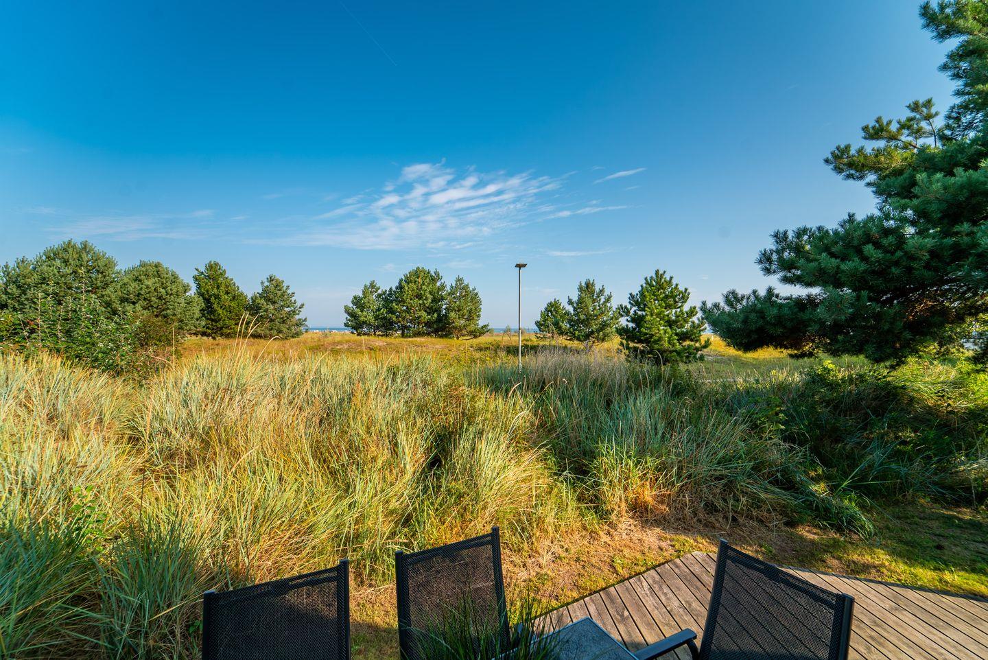 Die riesige Terrasse ist ein echtes Highlight! Ausgestattet mit Gartenmöbeln und einem Grill ist sie der perfekte Ort für gesellige Grillabende und entspannte Sonnenstunden. Du kannst mit Deinen Liebsten den grandiosen Blick über die Dünen bis hin zur Ostsee in aller Ruhe genießen!