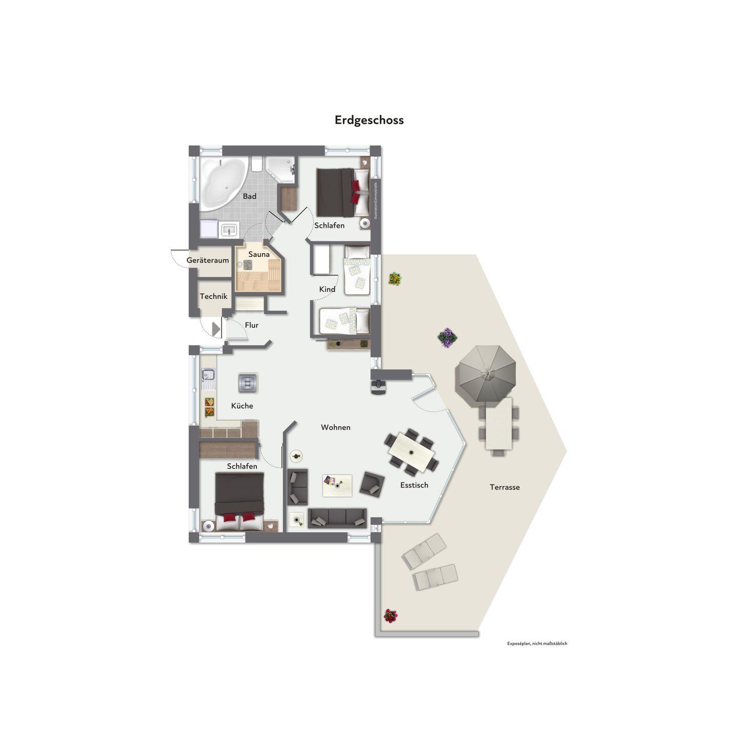 Mit 4 Zimmern bietet das Haus Platz für bis zu 6 Personen auf ca. 109 m²: