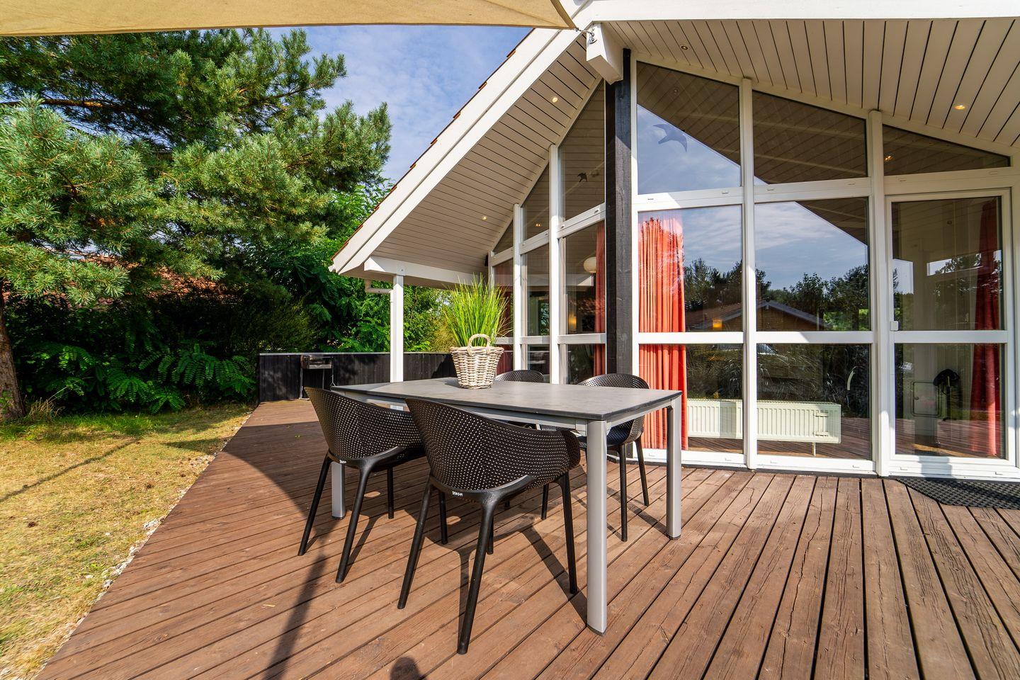 Ob Buch lesen auf den 2 Sonnenligen, den Grillkamin nutzen oder einfach nur Sonnen: Die riesige Terrasse bietet die maximale Urlaubsentfaltung und schafft das Höchstmaß an Erholung! Für die kühlen Köpfe auf der südlich ausgerichteten Terrasse sorgt ein Sonnensegel für ausreichend Sonnenschutz.