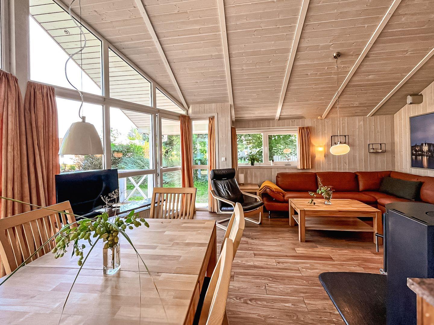Die lichtdurchflutete Gestaltung des Wohnbereichs lädt zu gemeinsamen Stunden, Essen oder Familienspieltagen ein.