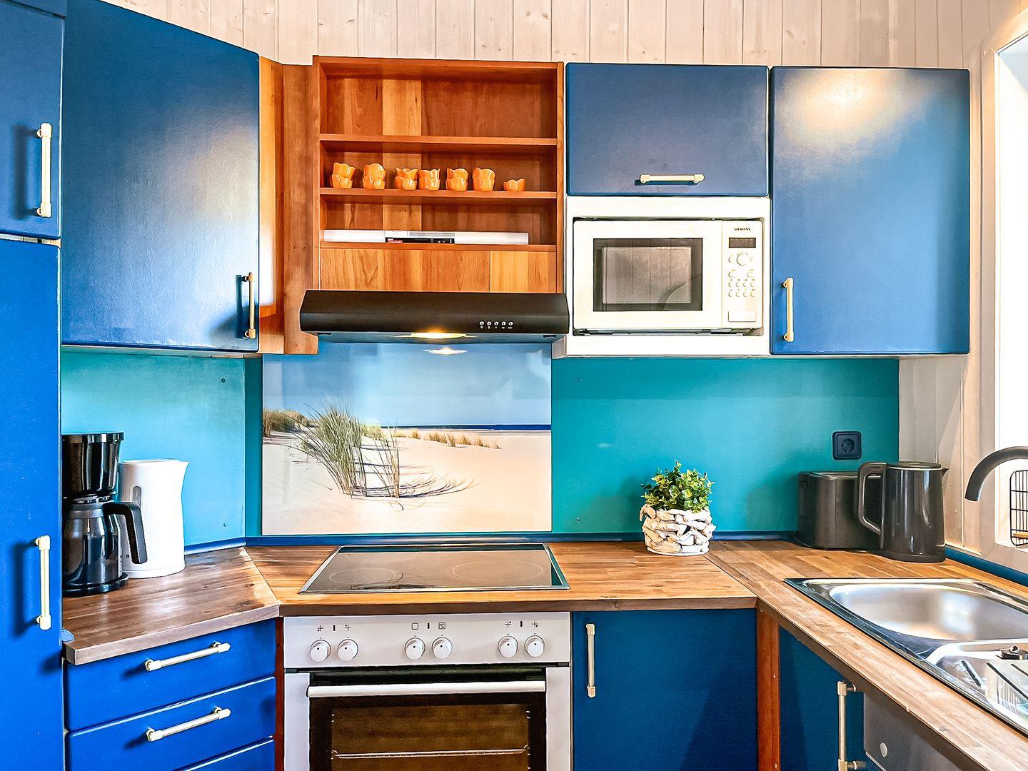 Die gut ausgestattete Küchenzeile lässt keine Wünsche offen. Hier findest Du beispielsweise: