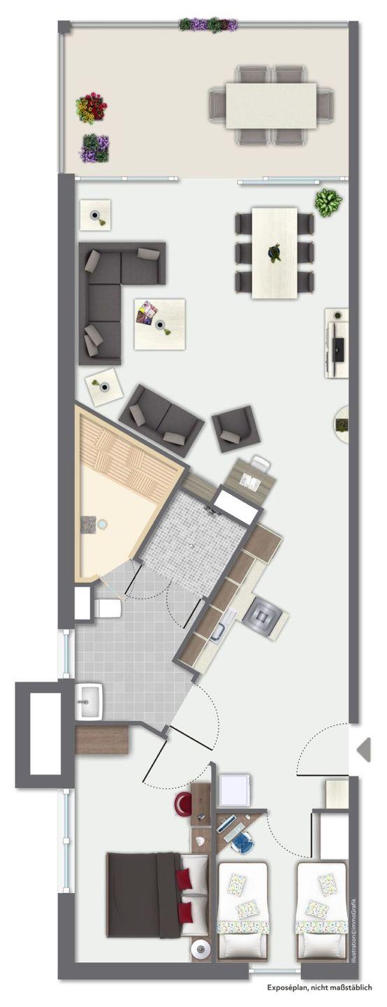 Auf rund 82 m² im 1. Stock erwartet Dich ein hochwertig ausgestattetes Zuhause mit Wohn-Essbereich, offener Küche, zwei separaten Schlafzimmern, einem luxuriösen Badezimmer sowie einem großzügigen Balkon mit außergewöhnlich schönem Blick auf die Ostsee.