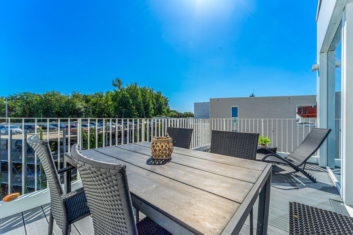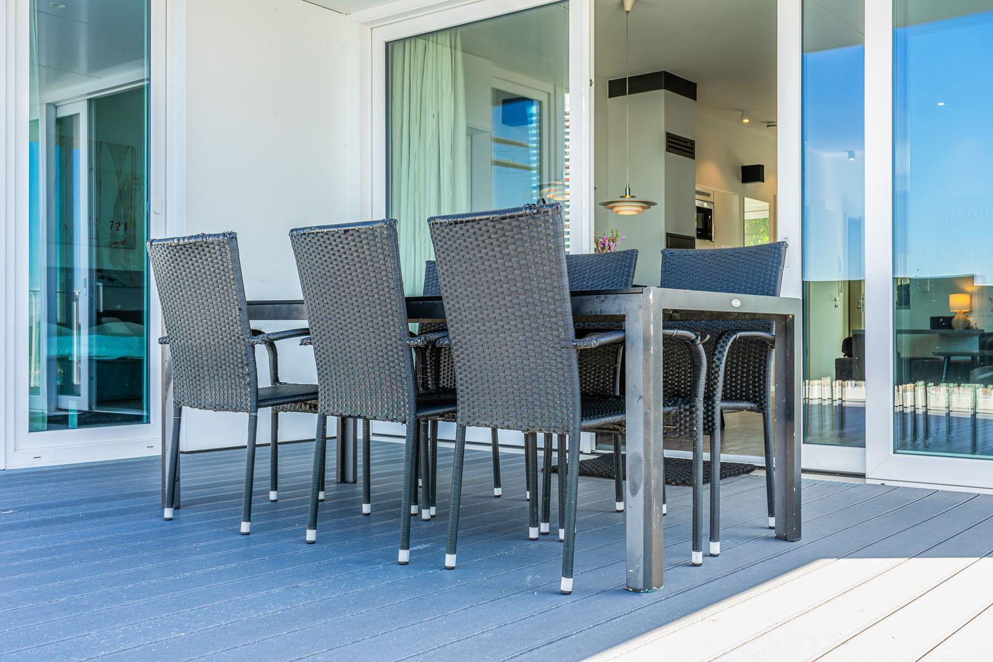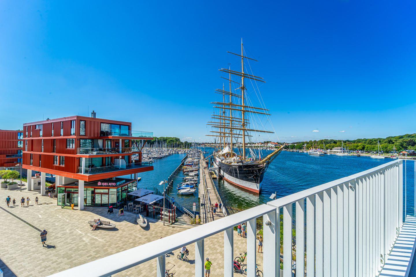 Die Dachterrassen bieten Dir einen einzigartigen Rundumblick: Auf der einen Seite schaust Du weit über den feinsandigen Strand und die Ostsee, auf der anderen Seite über den Segelhafen, die Travemündung, das Museumsschiff „Passat“ sowie die vorbeiziehenden Skandinavienfähren – ein Panorama, das seinesgleichen sucht. Mit Gartenmöbeln und Sonnenliegen ausgestattet, sind sie der perfekte Ort, um die frische Seeluft zu genießen, Sonne zu tanken und den unvergleichlichen Weitblick auszukosten.