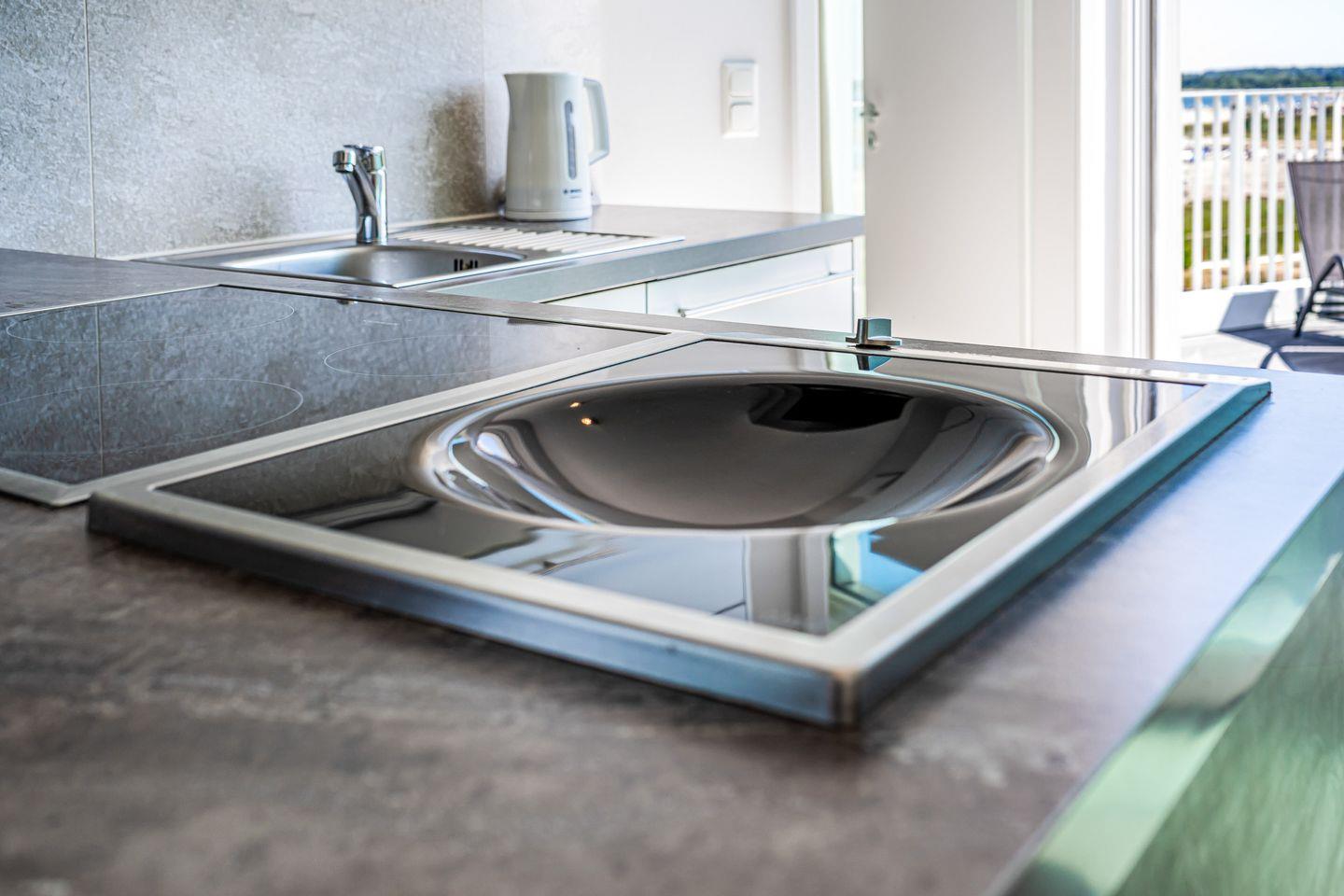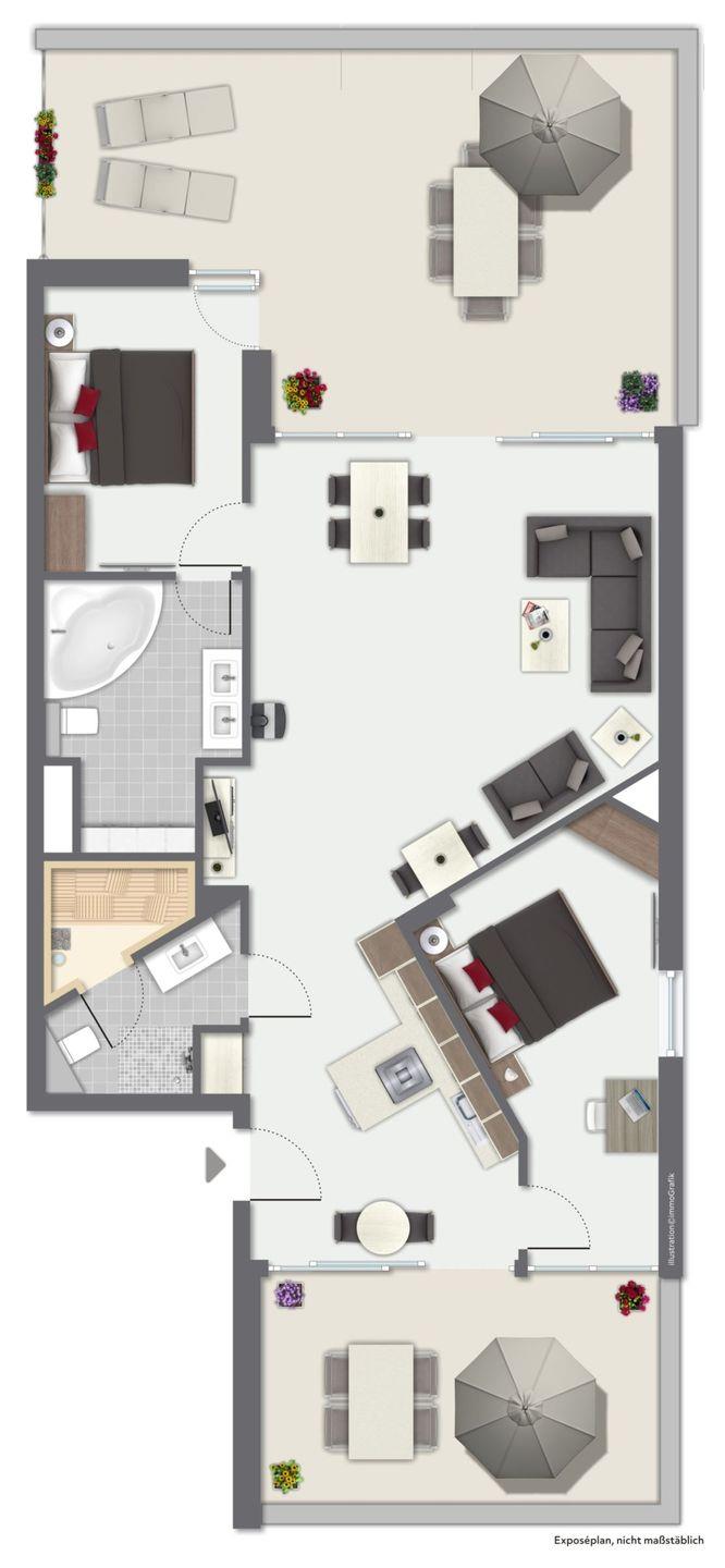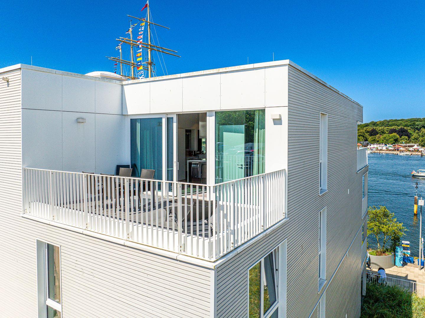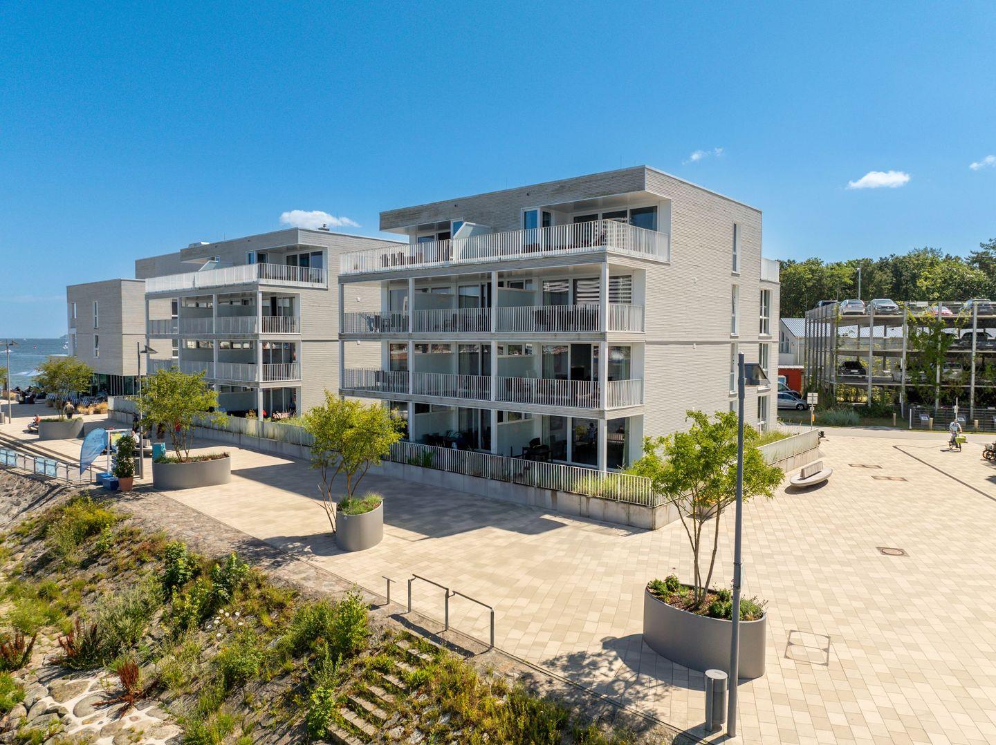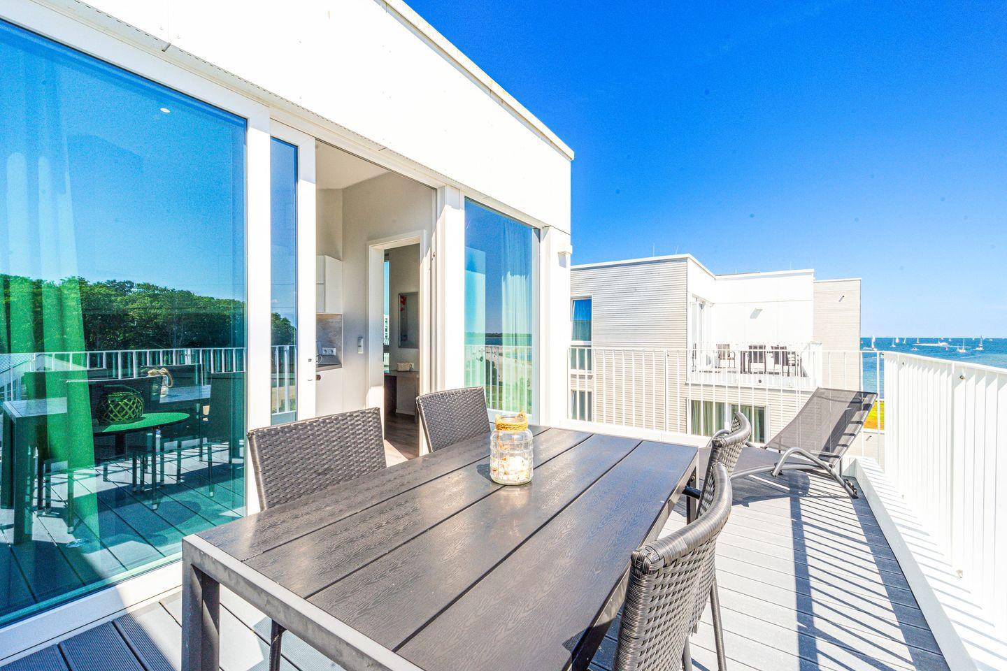 Die Dachterrassen sind nach zwei Seiten ausgerichtet, sodass Du sowohl den Strand als auch den Segelhafen mit der Travemündung überblickst. Das Museumsschiff „Passat“ und die vorbeiziehenden Fähren bieten ein faszinierendes Panorama. Mit Sonnenliegen und Gartenmöbeln ausgestattet, sind die Terrassen der perfekte Ort, um Sonne zu tanken und Deinen Urlaubstag entspannt draußen zu verbringen.