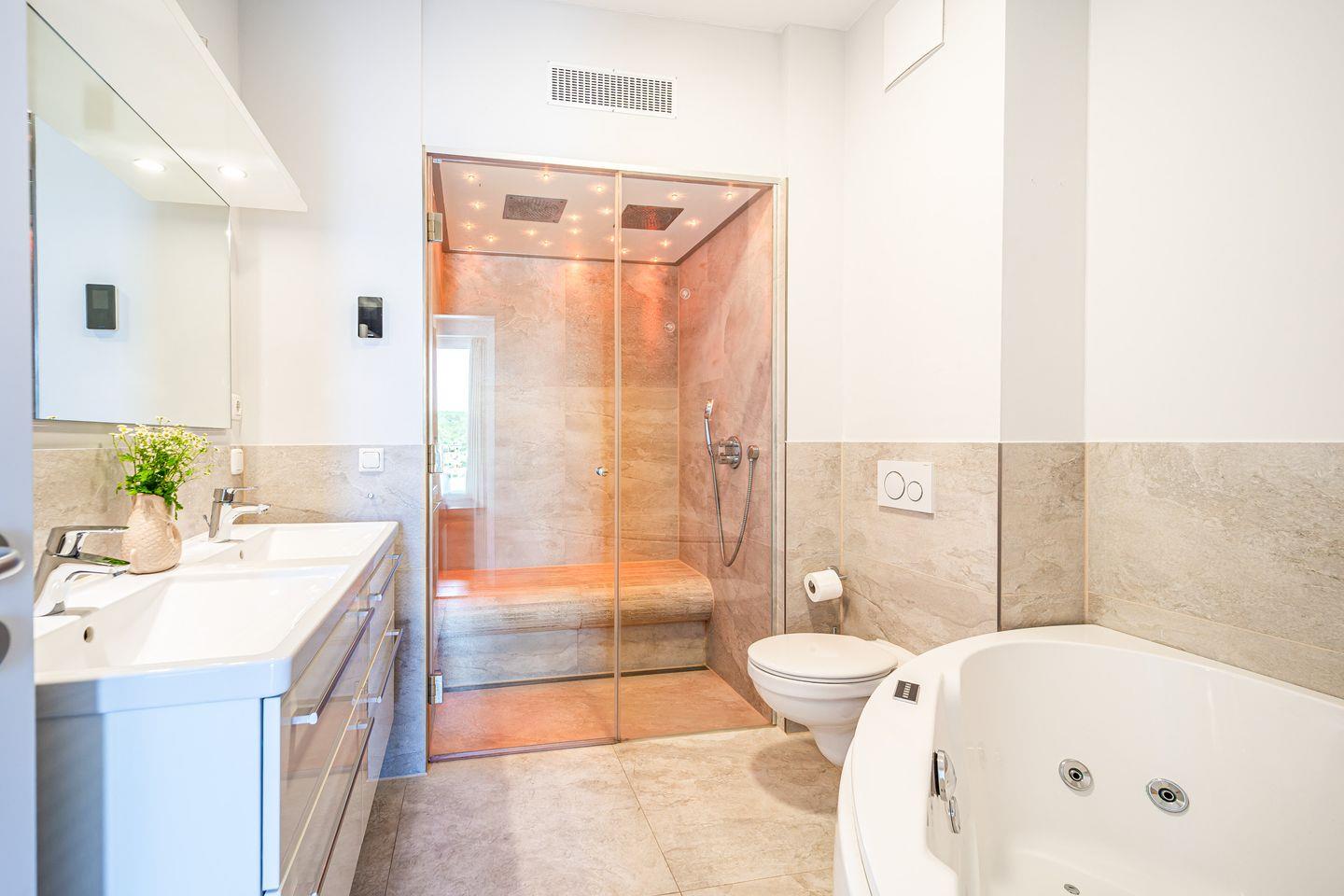 Die Badezimmer sind luxuriös ausgestattet und bieten Dir private Wellnessmomente:
