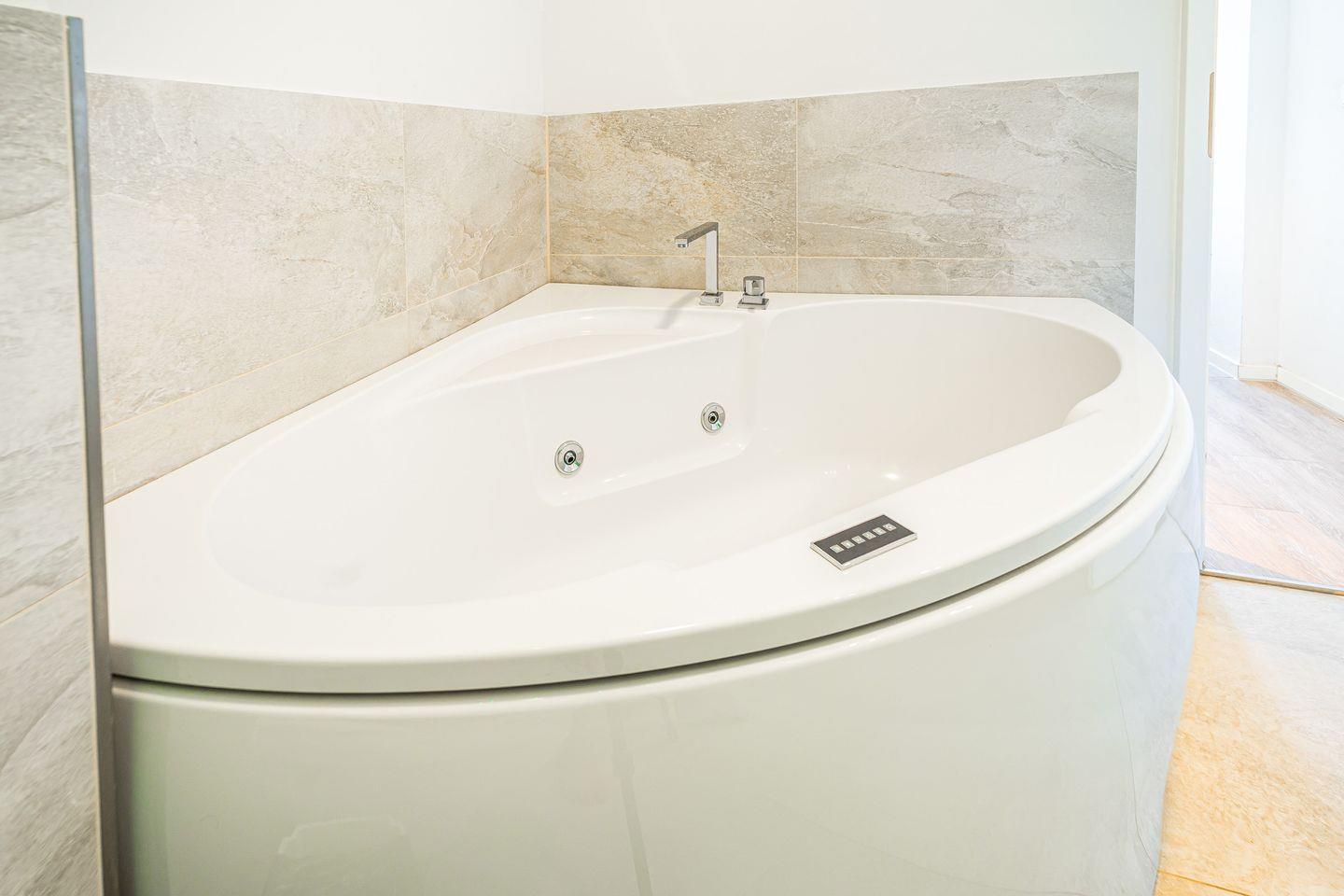 Im Badezimmer am Schlafzimmer findest Du eine Whirlpoolbadewanne, ein Dampfbad mit integrierter Doppelregendusche, WC und Föhn.