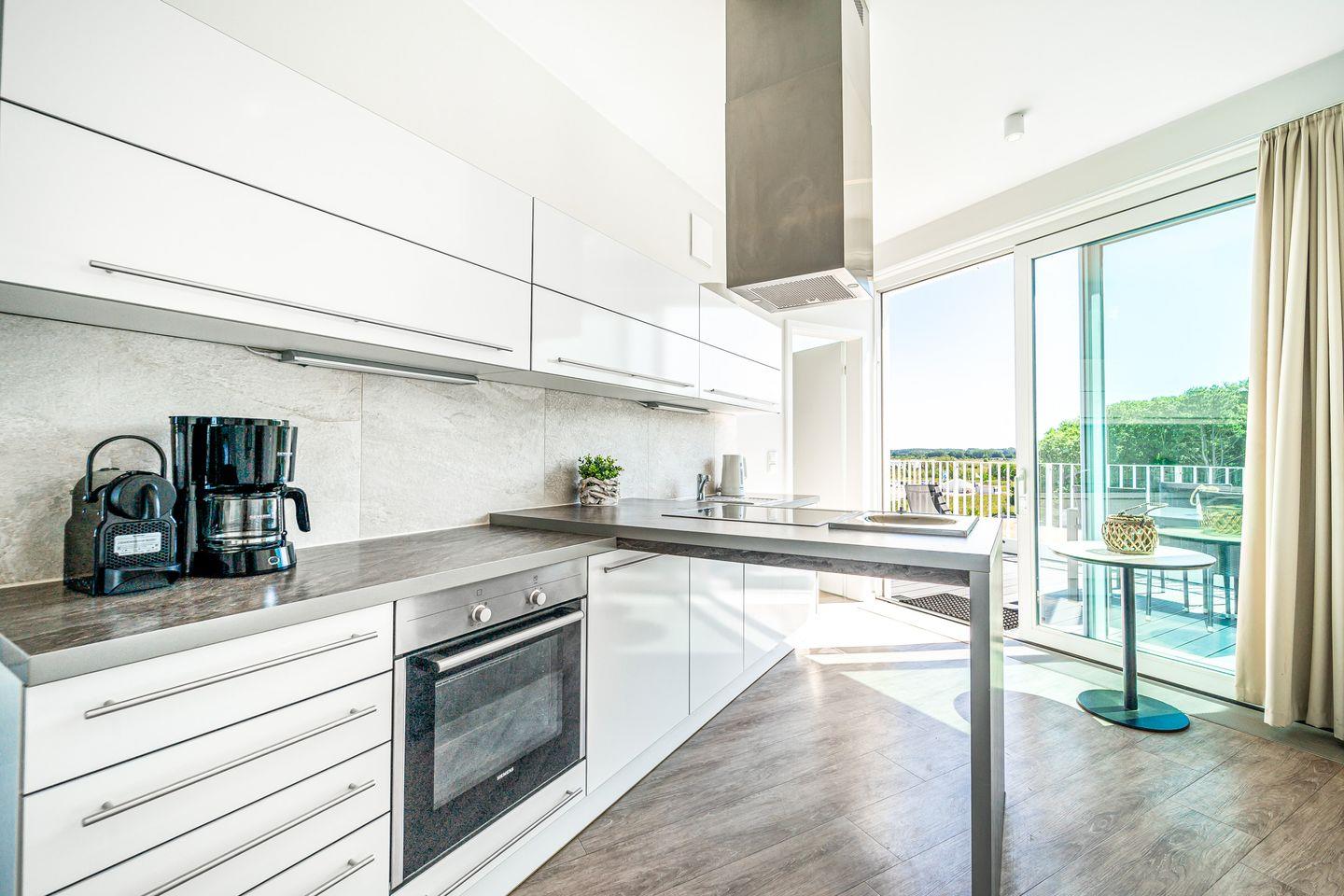 Auf rund 96 m² Wohnfläche erwarten Dich zwei Schlafzimmer, zwei Badezimmer und Platz für bis zu sechs Personen. Von diesem Penthouse im 3. Stock genießt Du durch die großen Fensterfronten und von gleich zwei Dachterrassen einen traumhaften Rundumblick auf die Ostsee.