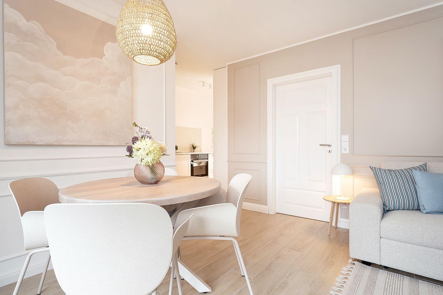 Die Wohnung überzeugt durch ihre moderne, geschmackvolle Einrichtung und lichtdurchflutete Räume.