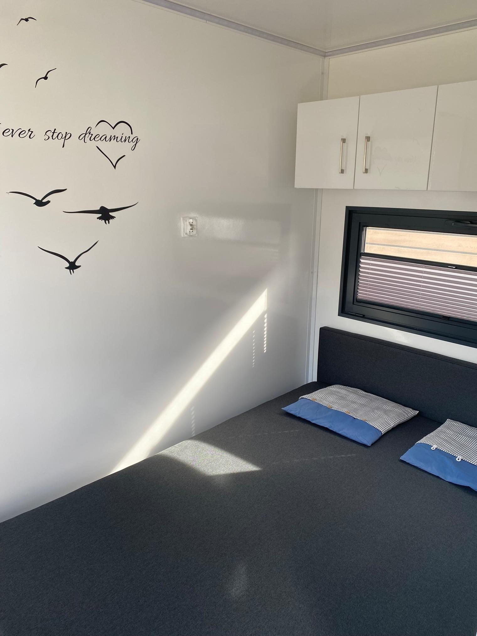 Ein abgeschlossenes Schlafzimmer mit Schlafcouch, so wie ein Schlafzimmer mit Doppelbett und Panorama Blick beim Aufwachen lässt sie herzlich willkommen. Die Dusche ist vorhanden. Die Bettwäsche und Handtücher können nach Wunsch gebucht werden.
