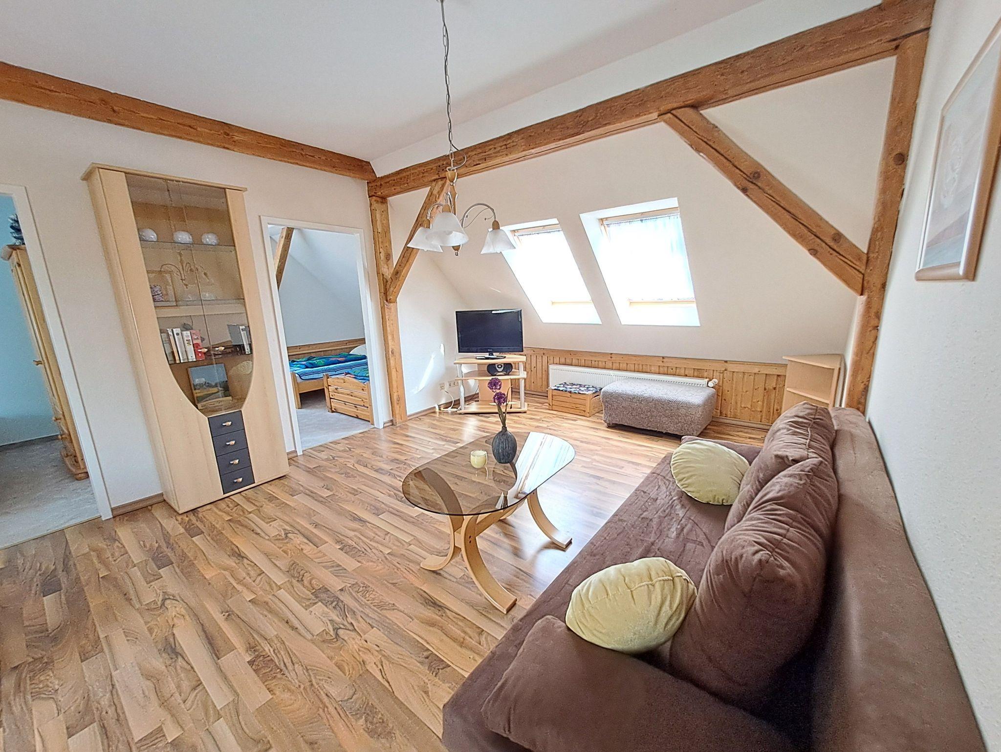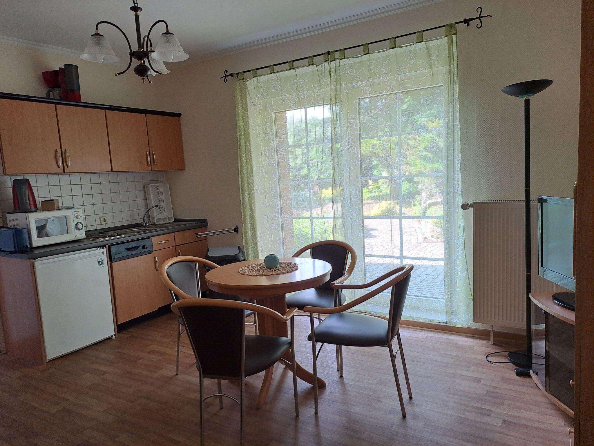 Ferienwohnung mit 1 Schlafraum, 1 Wohnschlafraum; Bad: DU/WC; Küche; Zentralheizung; TV, Radio; PKW Parkplatz; Terasse; Telefon, Strom und Wasser incl., W-Lan