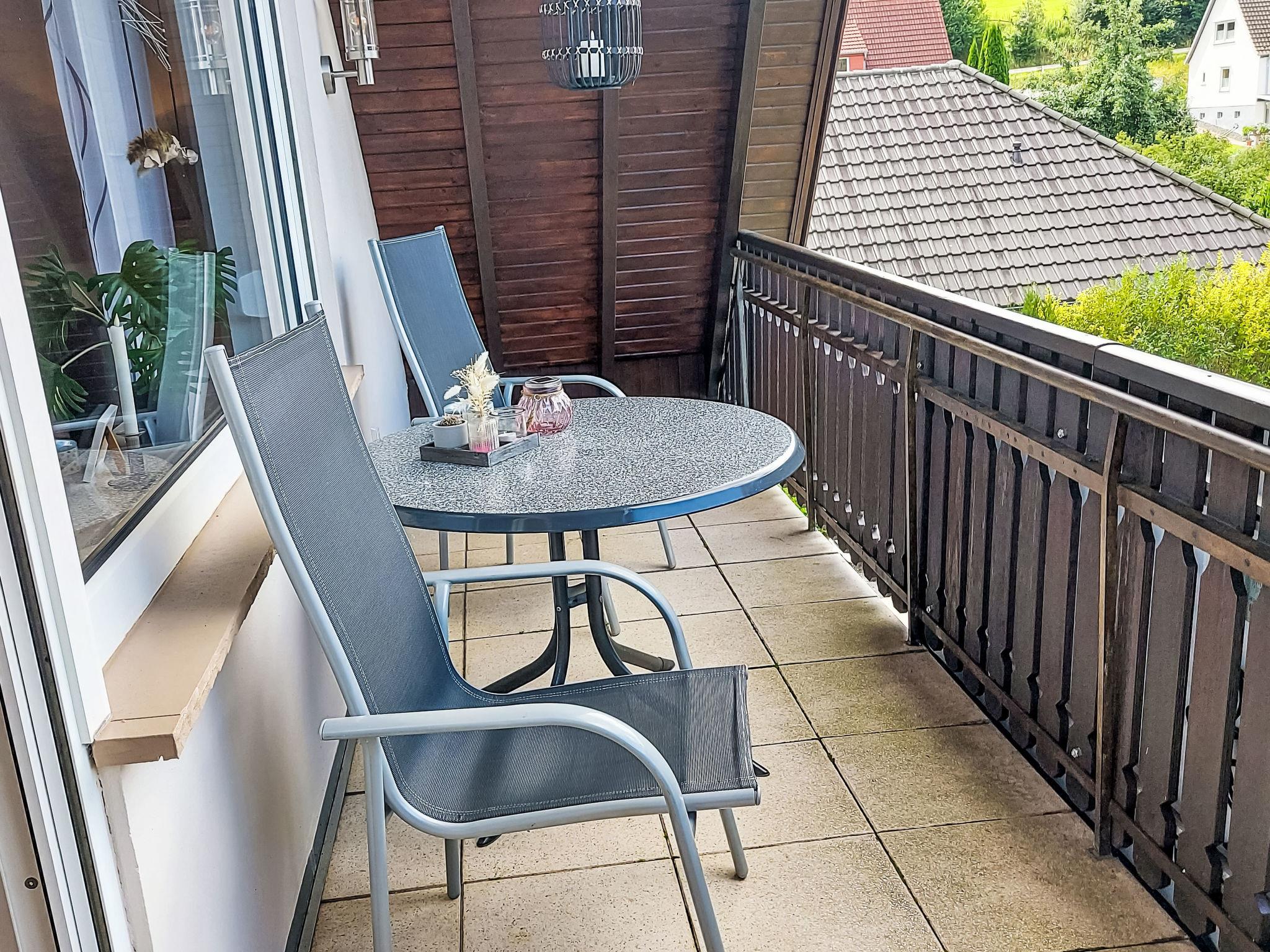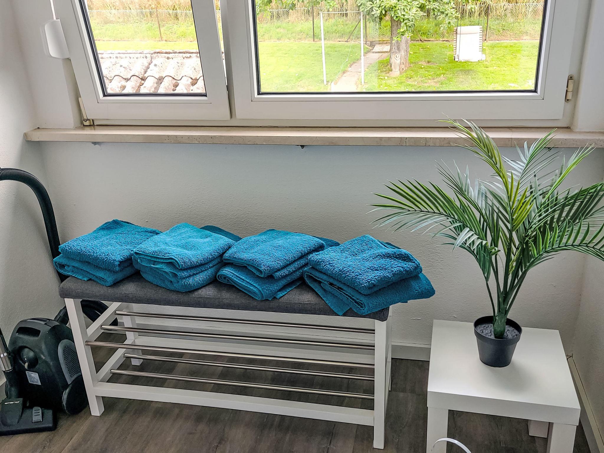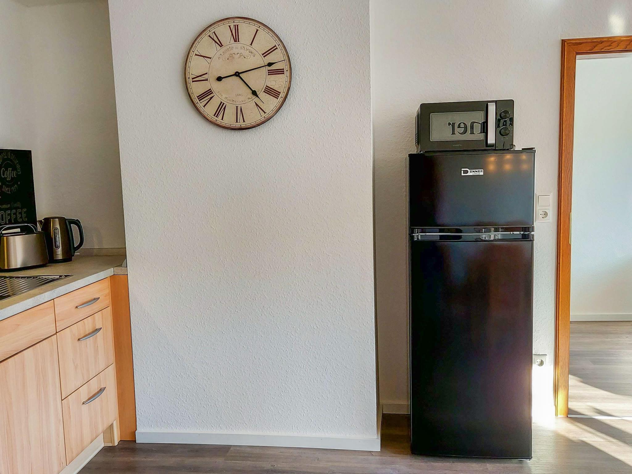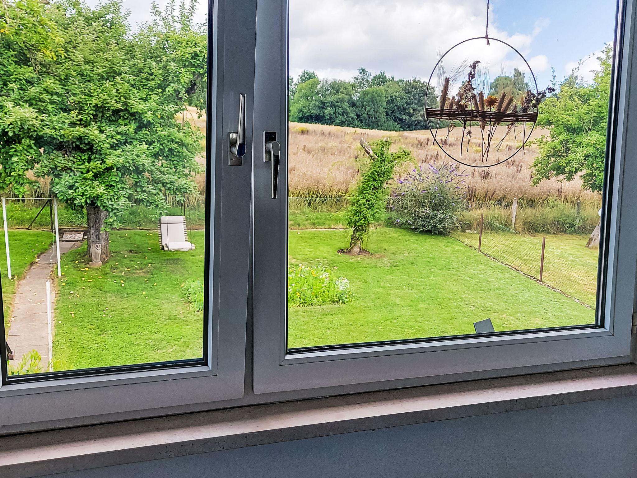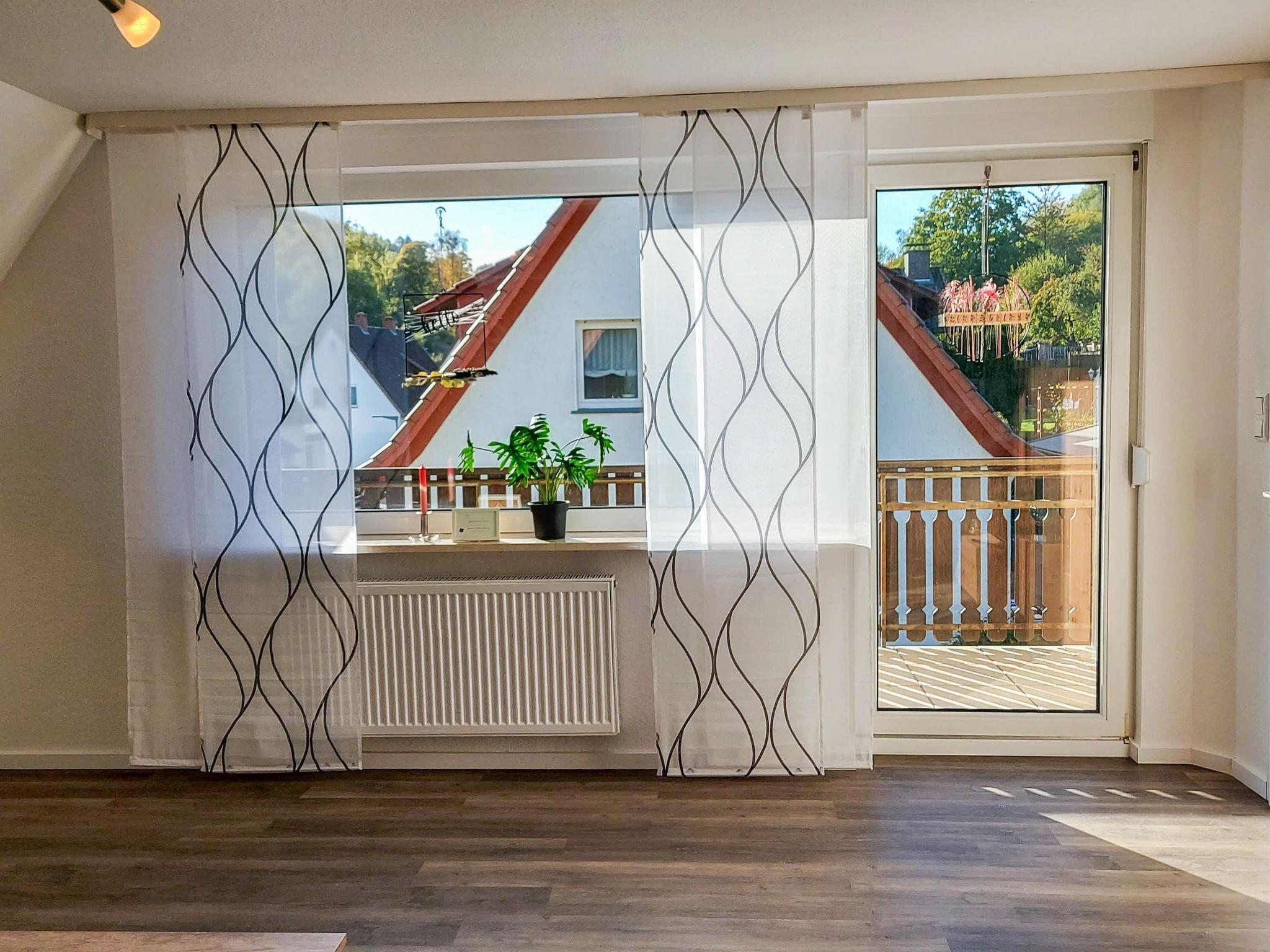 3-room apartment 80 m2 on 1st floor. Modern and cosy furnishings: living/sleeping room with 1 sofabed, satellite TV and flat screen. Exit to the balcony. 1 room with 2 beds (90 cm, length 200 cm). 1 room with 1 double bed (180 cm, length 200 cm). Kitchen (4 ceramic glass hob hotplates, toaster, microwave, freezer, electric coffee machine) with dining table. Shower/WC. Oil heating. Balcony 12 m2. Balcony furniture, box-room. Beautiful view of the countryside. Facilities: children's high chair, baby cot. Internet (WiFi, free). Parking at the house. Please note: non-smokers only. Maximum 2 pets/ dogs allowed. Smoke alarm, fire extinguisher.