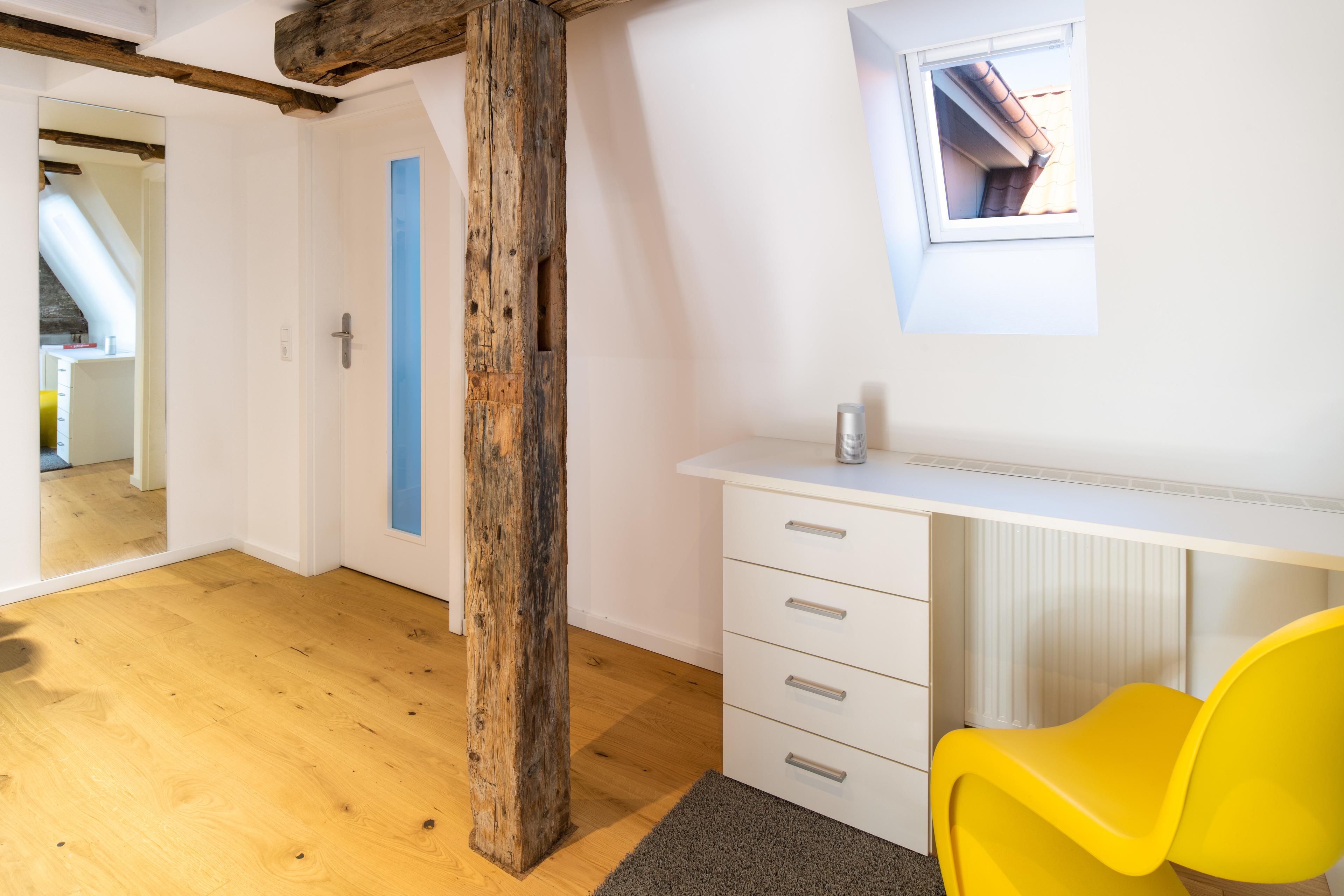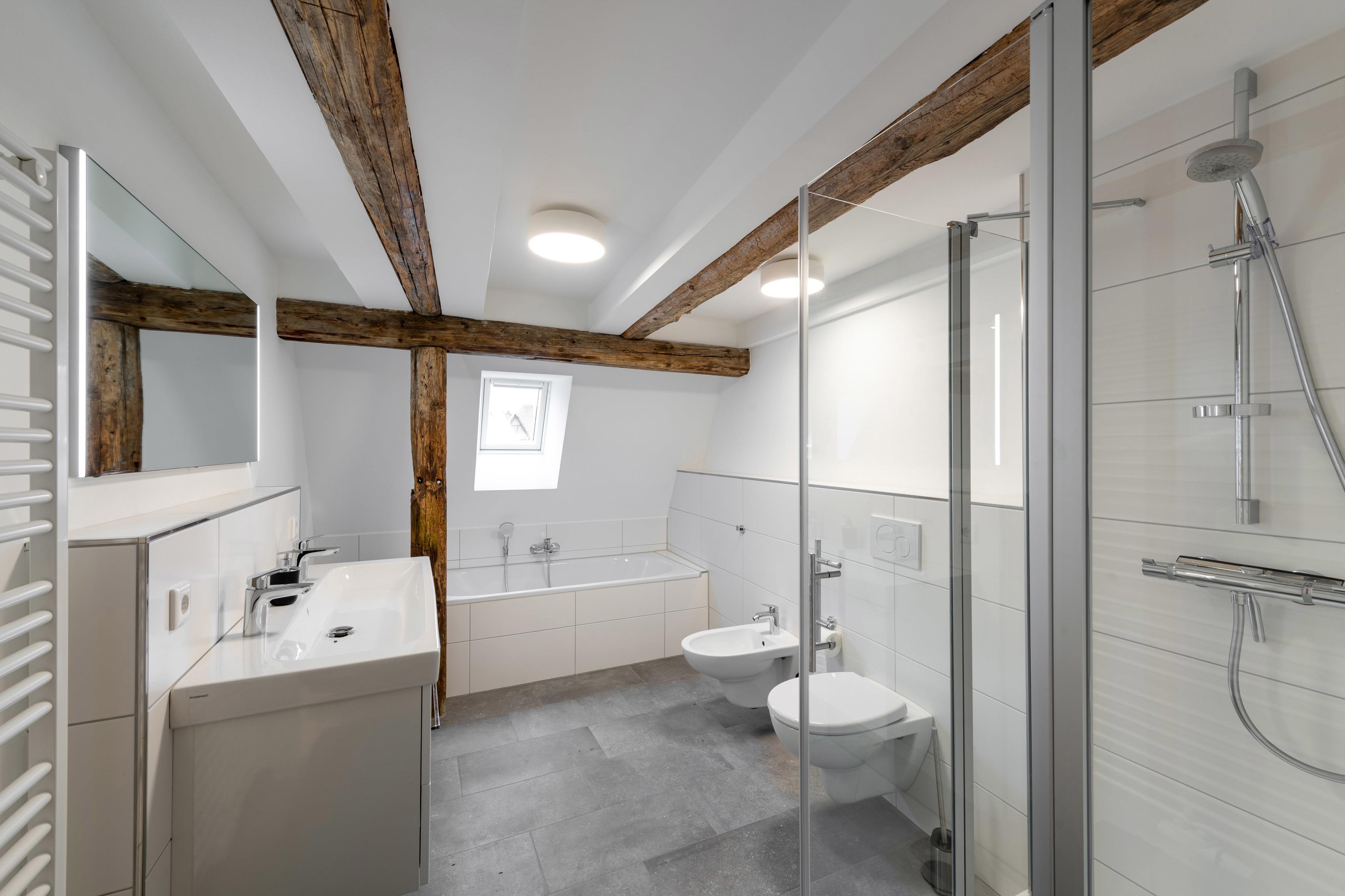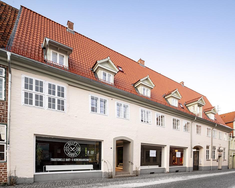 In erstklassiger Lage; mitten in der Altstadt - in unmittelbarer Nähe der Schröderstraße und des Schrangenplatzes . Zwei Dachgeschosswohnungen im zweiten Stockwerk mit kolossalen Deckenhöhen von 7,5 m, Galerieebenen, alte Backsteinmauern und altem Fachwerk, das bis auf 1389 zurückgeht. Die über 100 m² großen Suiten sind mit hochwertigen Parkettböden, vollständig ausgestatteten Küchen und Bädern mit Badewanne, Dusche, Bidet, zwei Waschbecken und beheizbaren Spiegeln, damit diese nicht beschlagen, ausgestattet. Eine der Suiten verfügt über einen kleinen französischen Balkon.