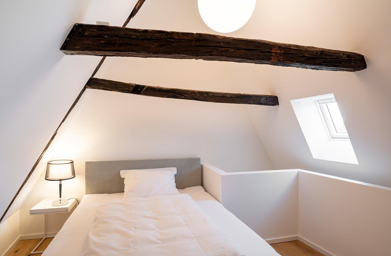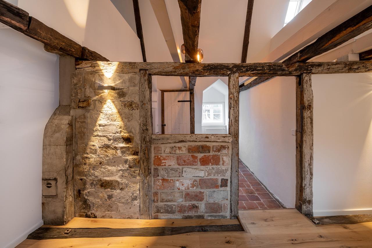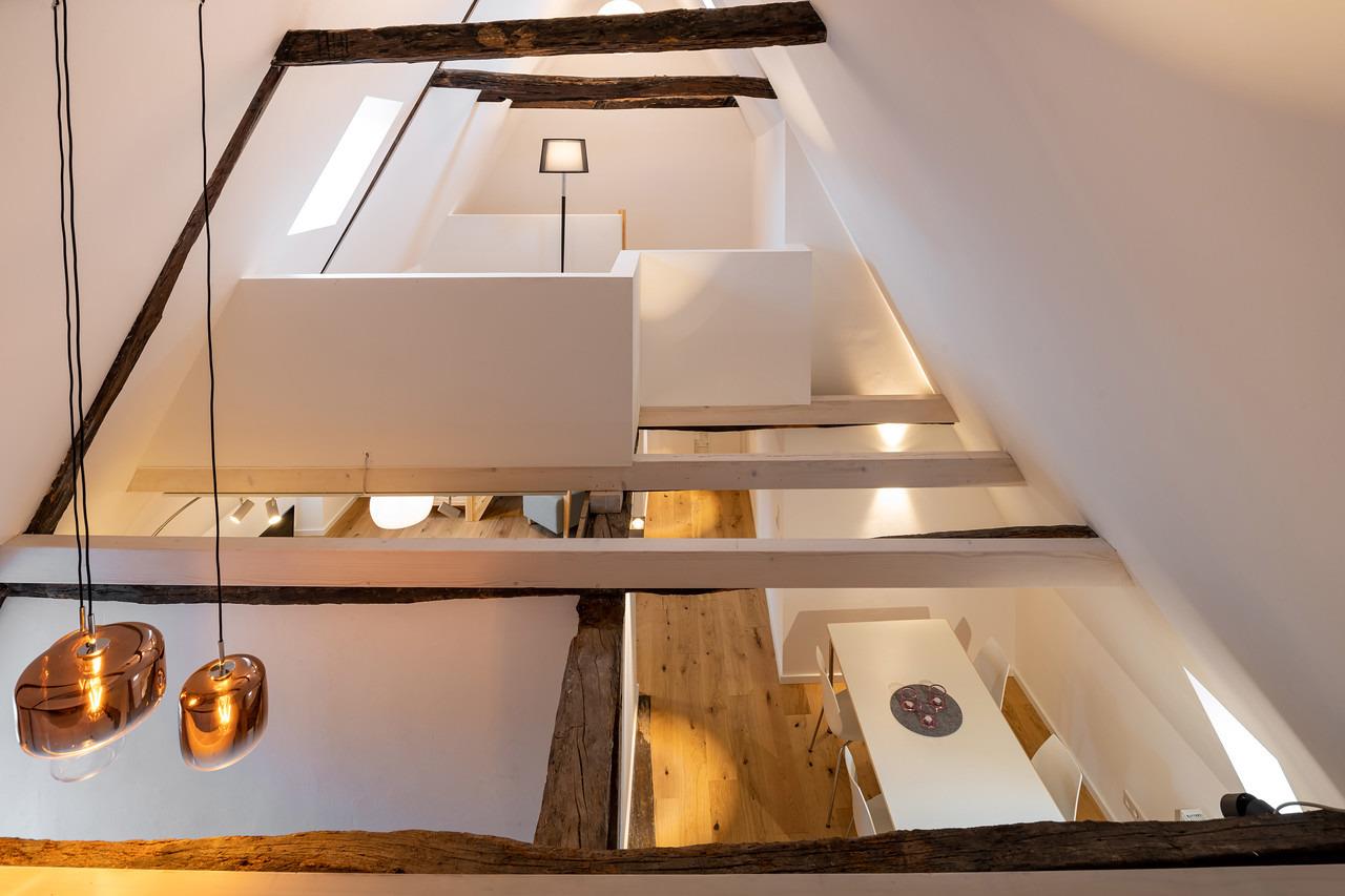 In erstklassiger Lage; mitten in der Altstadt - in unmittelbarer Nähe der Schröderstraße und des Schrangenplatzes . Zwei Dachgeschosswohnungen im zweiten Stockwerk mit kolossalen Deckenhöhen von 7,5 m, Galerieebenen, alte Backsteinmauern und altem Fachwerk, das bis auf 1389 zurückgeht. Die über 100 m² großen Suiten sind mit hochwertigen Parkettböden, vollständig ausgestatteten Küchen und Bädern mit Badewanne, Dusche, Bidet, zwei Waschbecken und beheizbaren Spiegeln, damit diese nicht beschlagen, ausgestattet. Eine der Suiten verfügt über einen kleinen französischen Balkon.