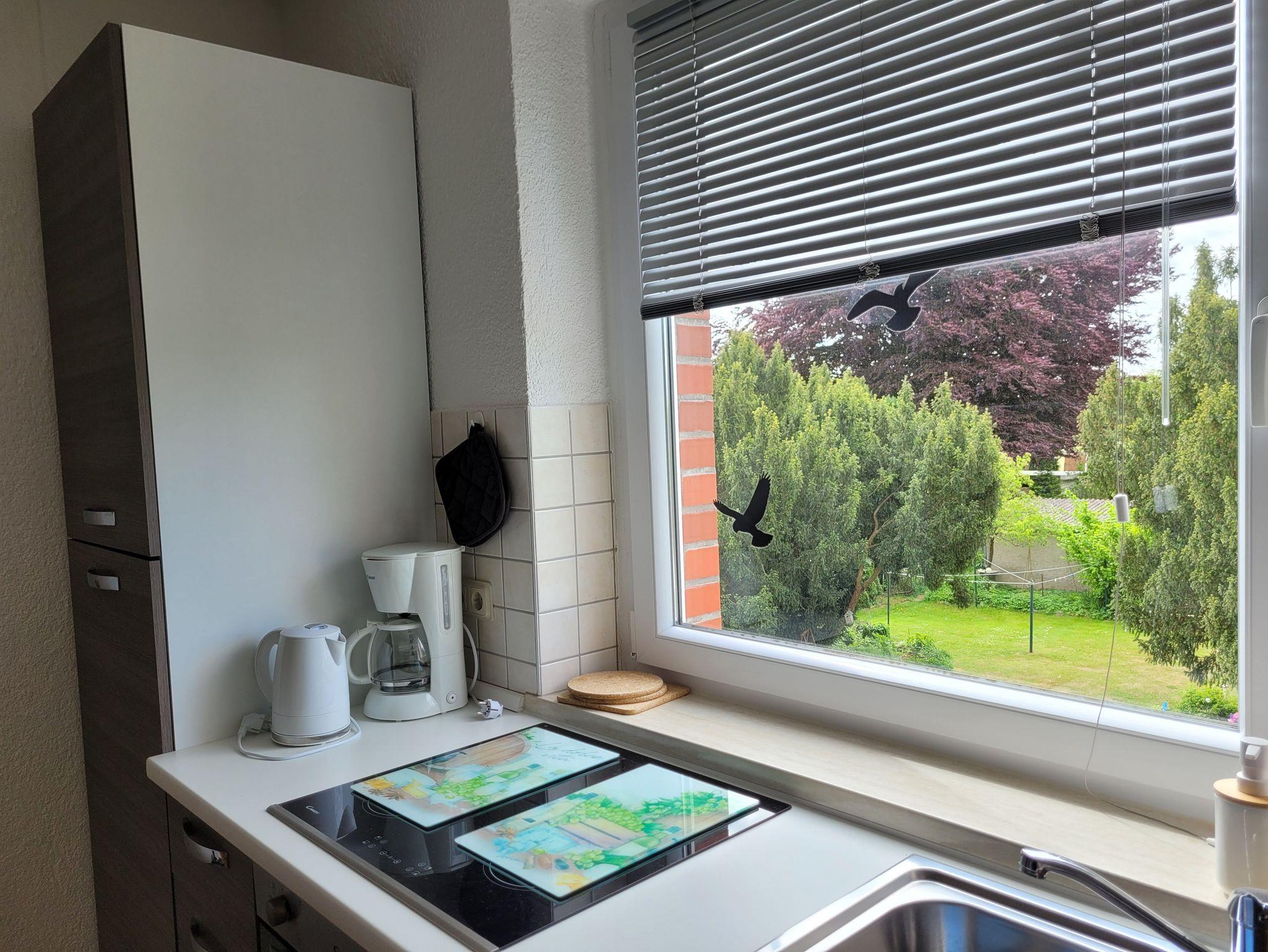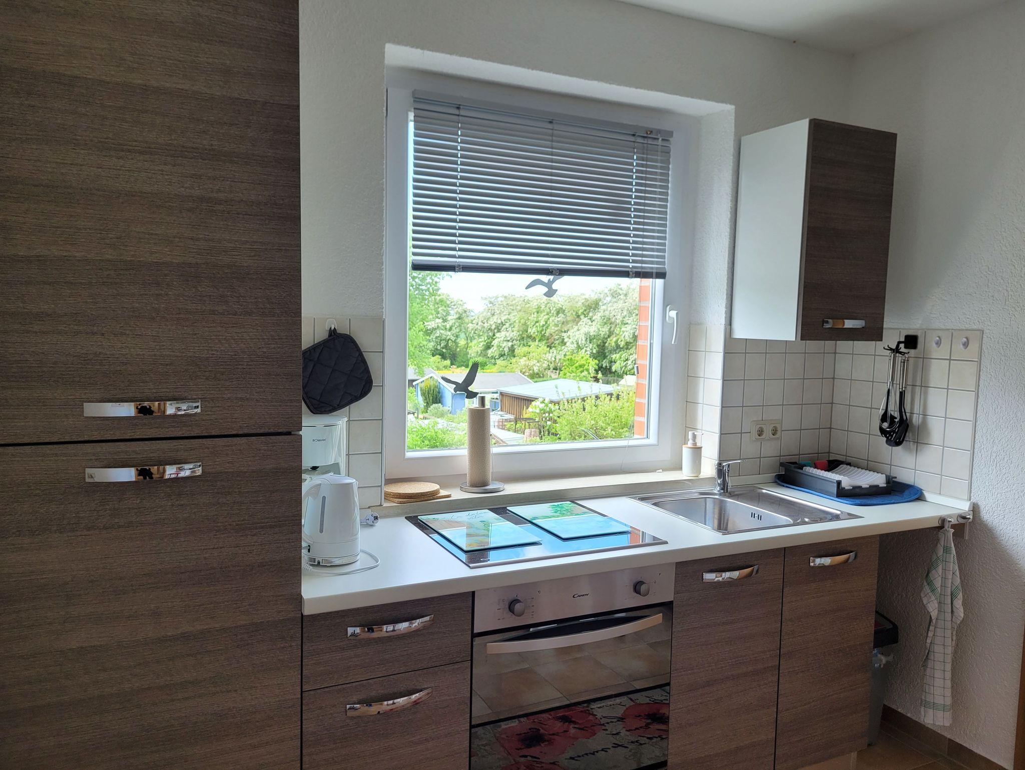 Die moderne Küche ist ausgestattet mit Cerankochfeld, Backofen, Mikrowelle, Kühl- & Gefrierschrank und ist mit allem notwendigen wie Toaster, Kaffeemaschine, Wasserkocher, Geschirr, Besteck, Töpfen etc. .