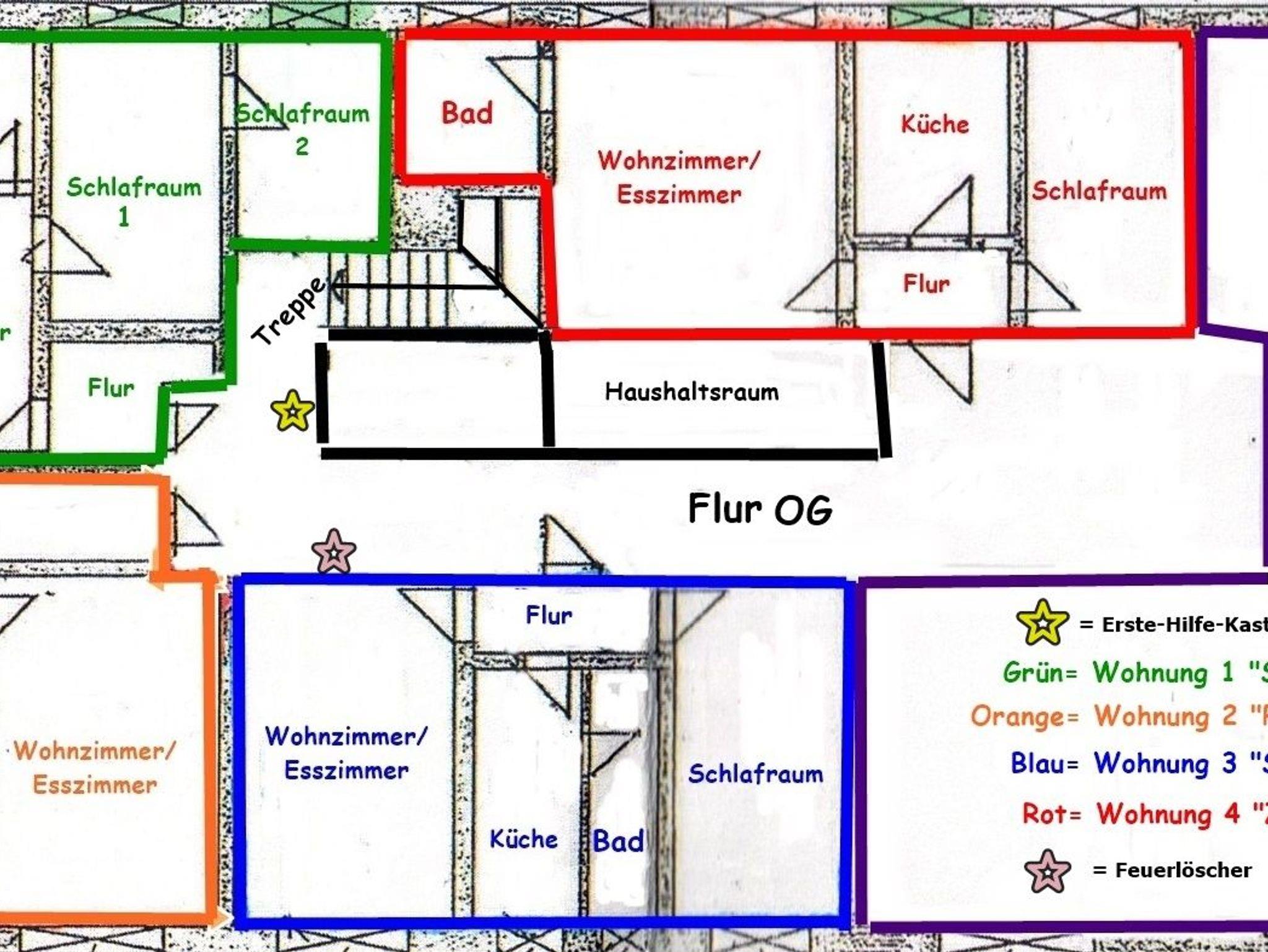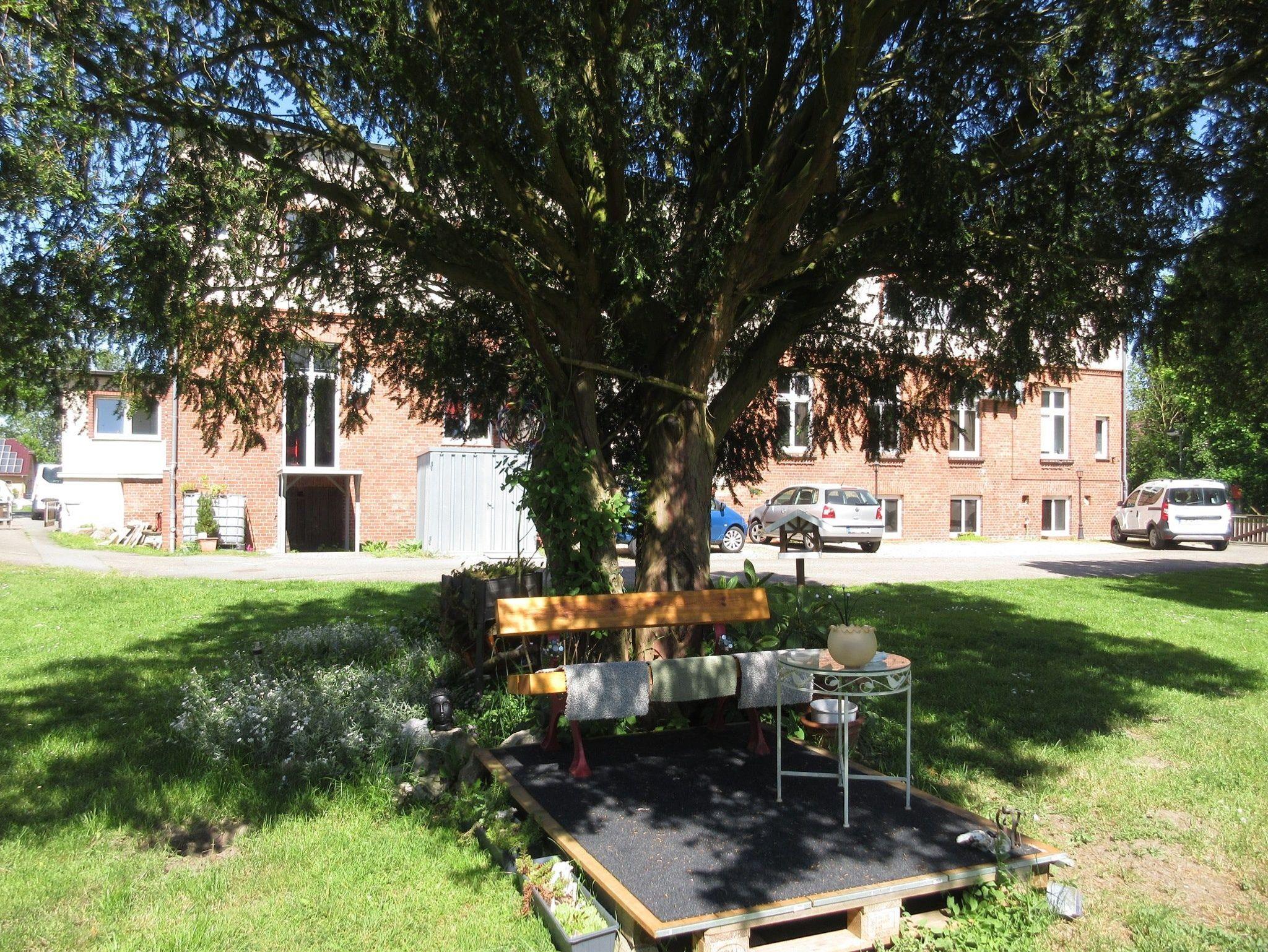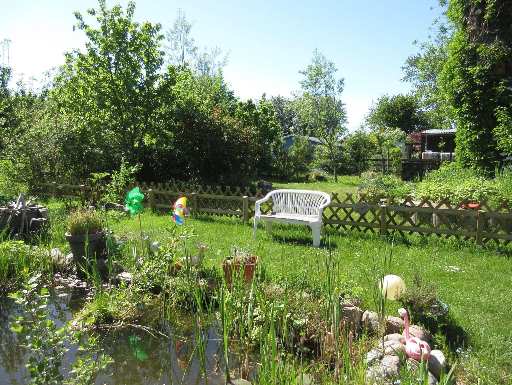 Hinter dem Haus befindet sich auf dem komplett eingezäunten Grundstück (Höhe ca. 60 ? 120cm), der kostenlose Parkplatz, ein großer Garten mit Wiese (Auslauf für die Hunde), Gartenmöbeln und einen Grillplatz, der gerne mitgenutzt werden kann.