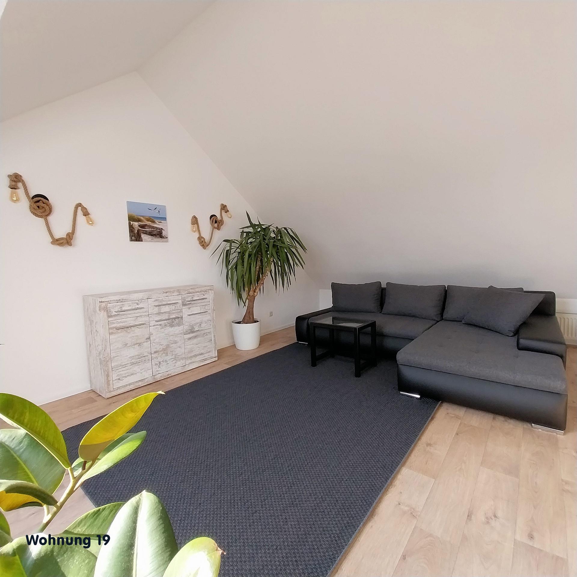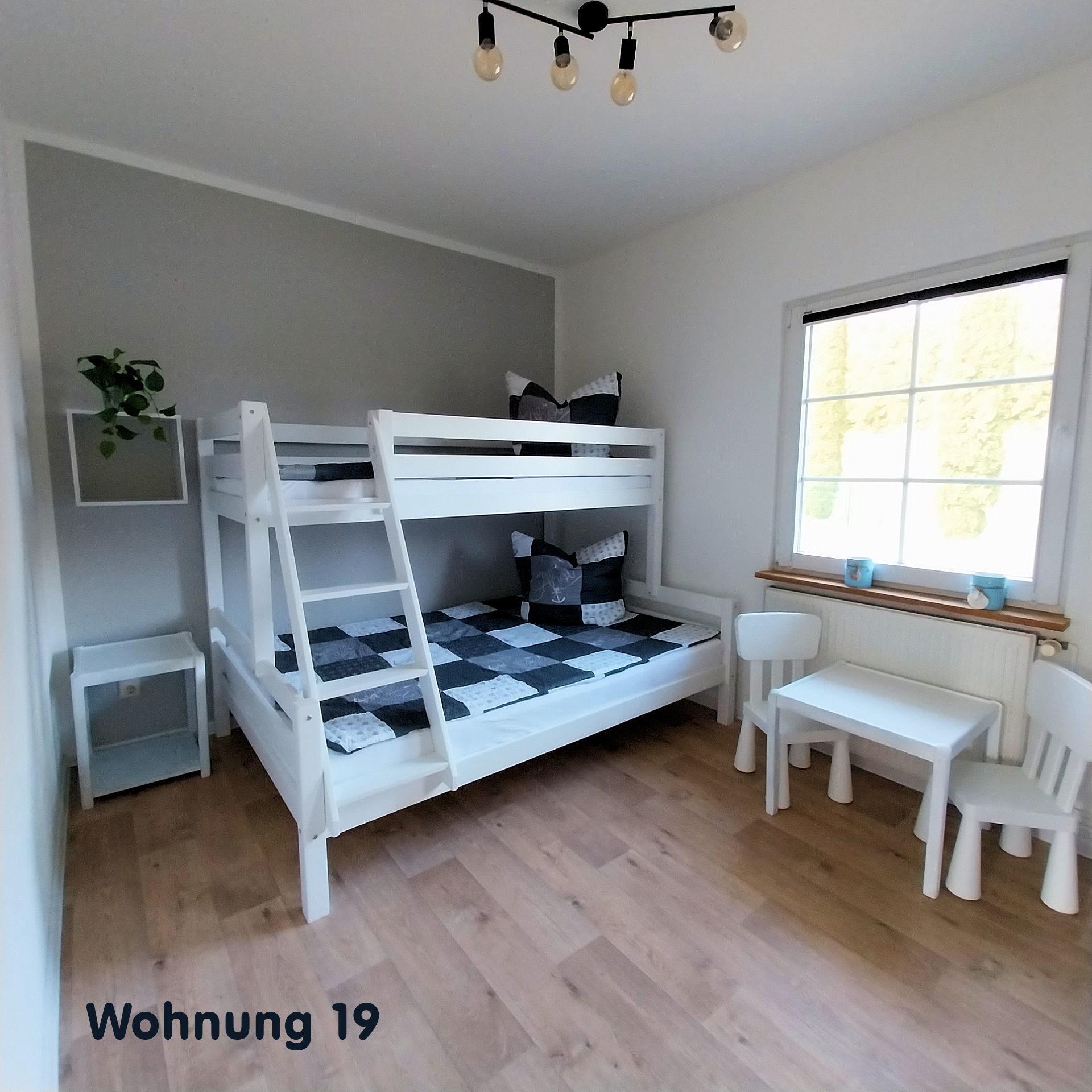 Die Fewo verfügt über 2 Schlafzimmer mit Doppel-, Kinder-, und Etagenbett, ein eigenes Bad mit Dusche, eine voll ausgestattete Küche (Kühl-, Gefrierkombination, Herd mit Backofen, Geschirrspüler, Wasserkocher, Kaffeemaschine Toaster) mit Essbereich, Wohnbereich mit Schlafcouch und einen Flachbild-Satelliten-TV und eine Terrasse mit Strandkorb, Terrassenmöbel, Sonnenschirm und Grill