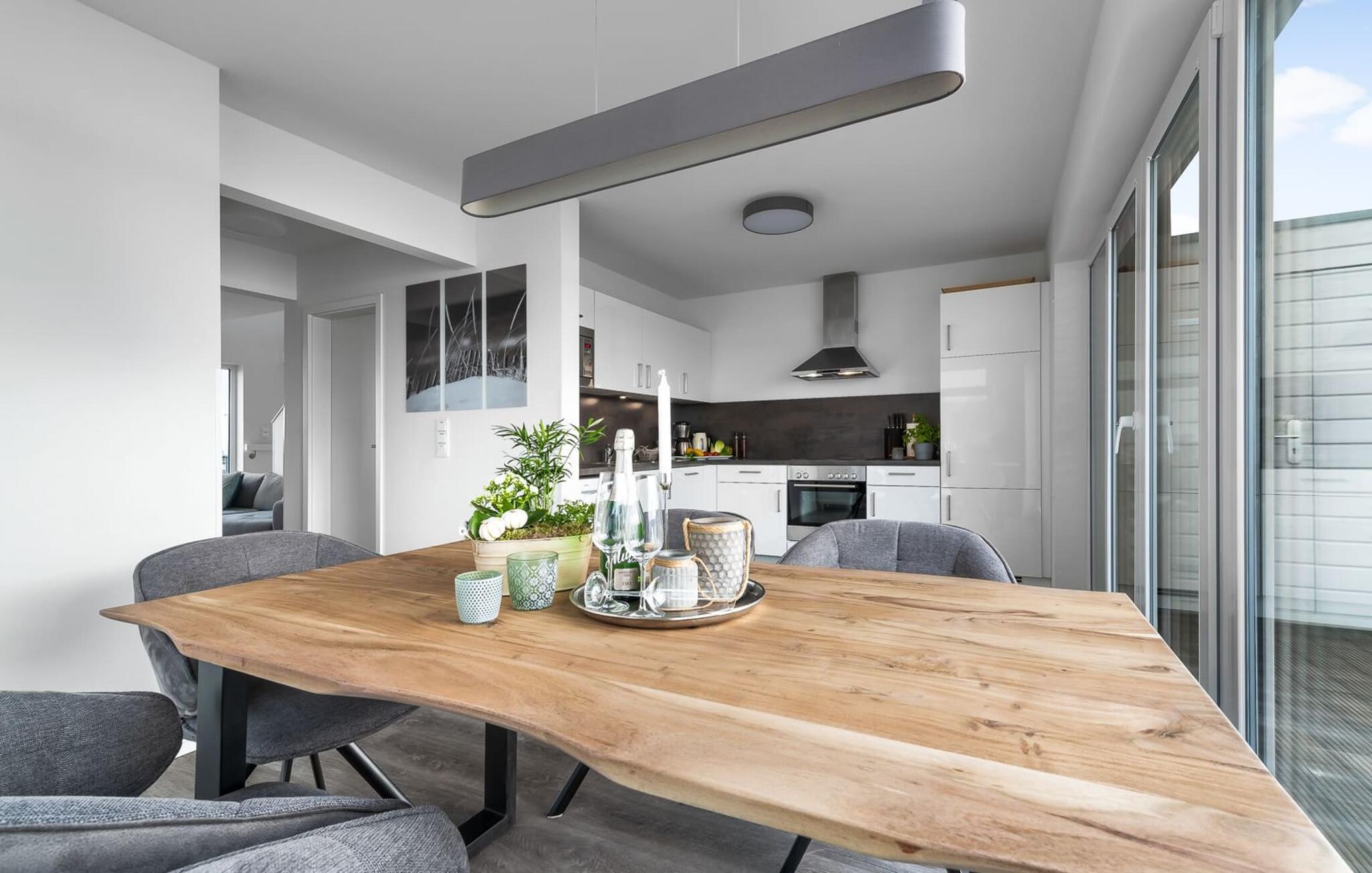 På ferien er der tid til kreativ madlavning, det fuldt udstyrede køkken-alrum lader intet tilbage at ønske.