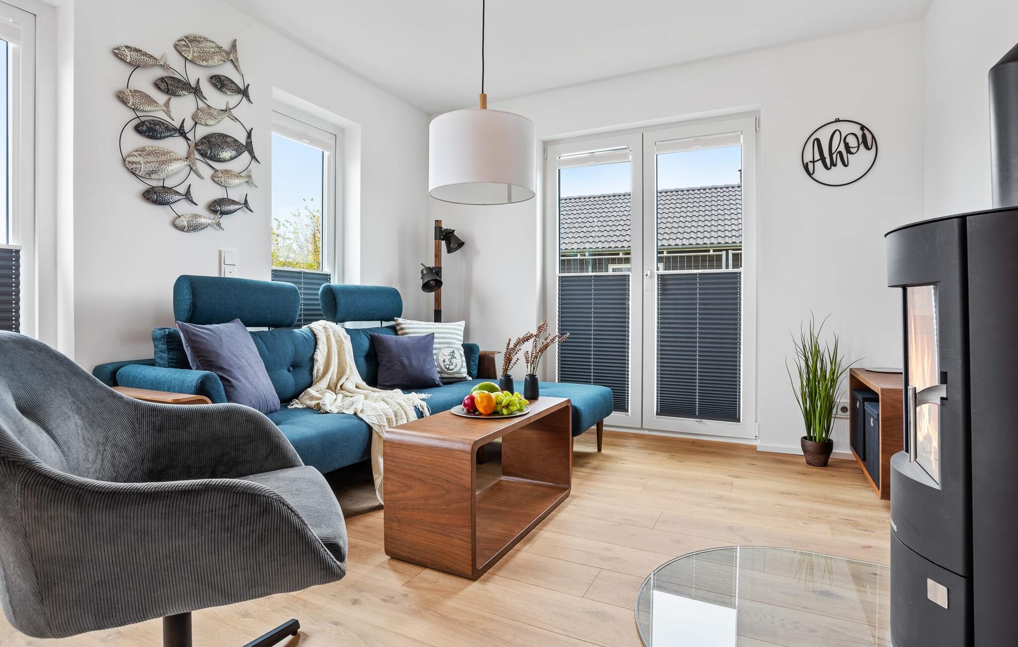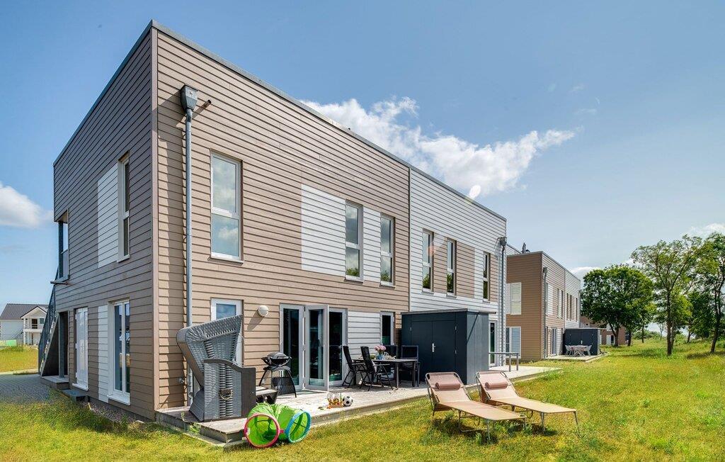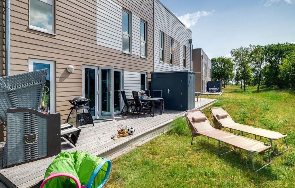 Direkte fra opholdsrummet kommer man ind på den store terrasse med syd-vest orientering. Dette tilbyder afslappende timer væk fra stress og jag i resten af ??feriestedet ved Østersøen. Vender mod bagsiden med udsigt over den naturbeskyttede strandenge, marker og havet inviterer havemøblerne og den komfortable strandstol dig til at tilbringe en afslappende ferie.
