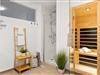 Bruserummet med brusebad i gulvniveau og infrarød sauna sikrer uforglemmelige wellness-øjeblikke, som du kan nyde i lang tid.
