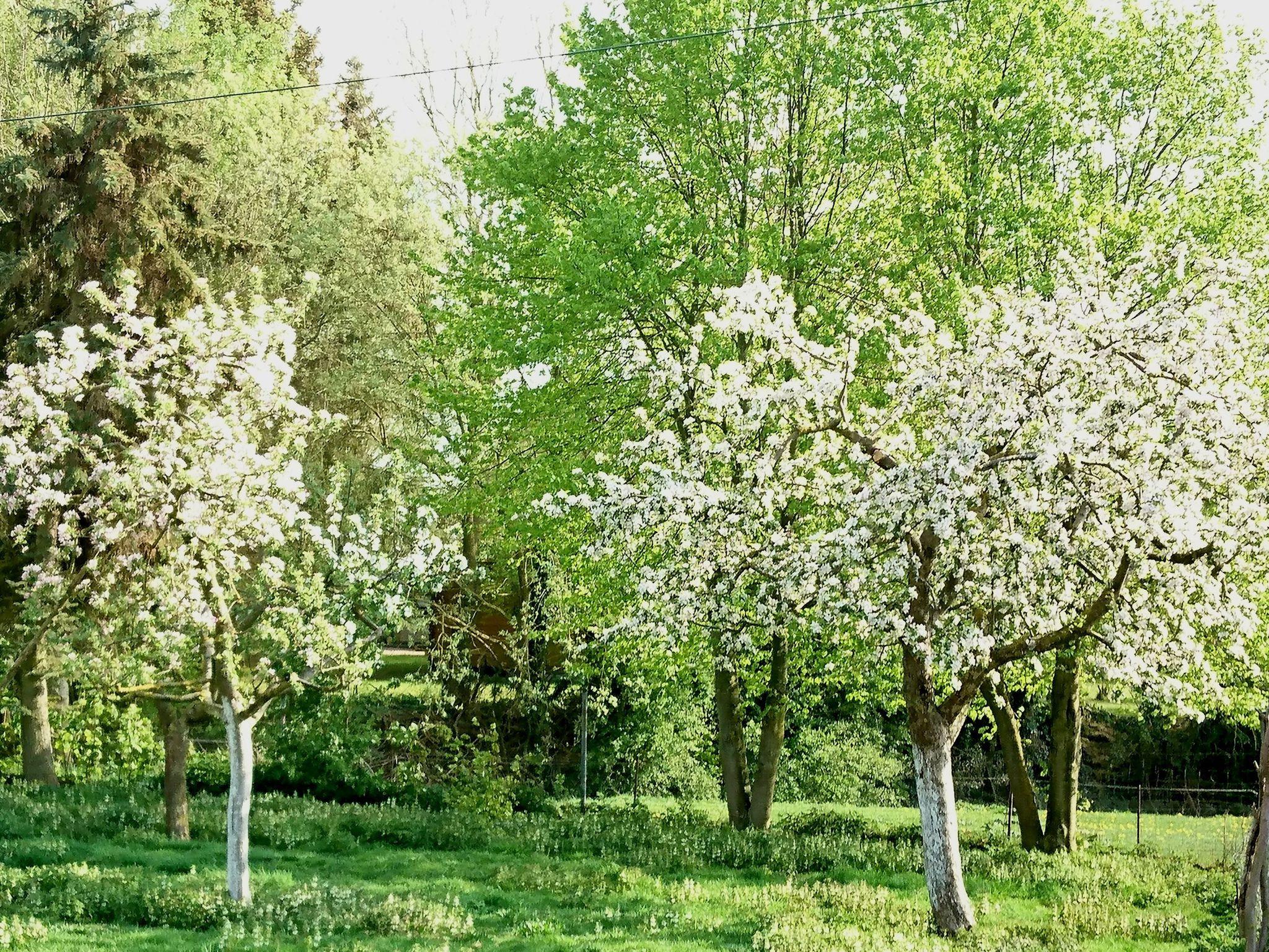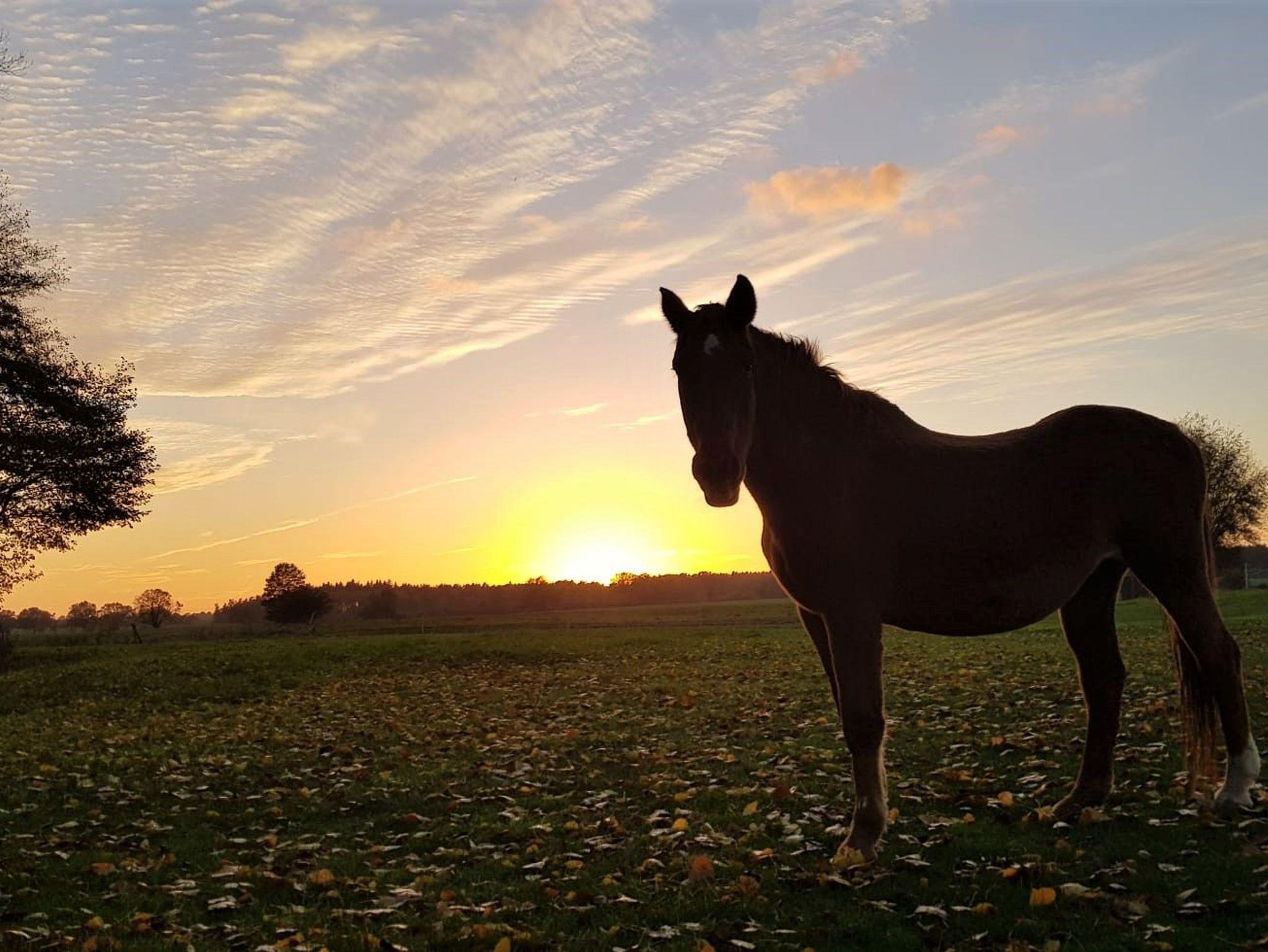 Auf unserem 4000 m² großen Grundstück mit Obstbäumen sind auch ein paar Tiere zu Hause, wie die Border-Colliehündin Fly, 2 Katzen, Pferde, Kaninchen, Enten und Hühner.