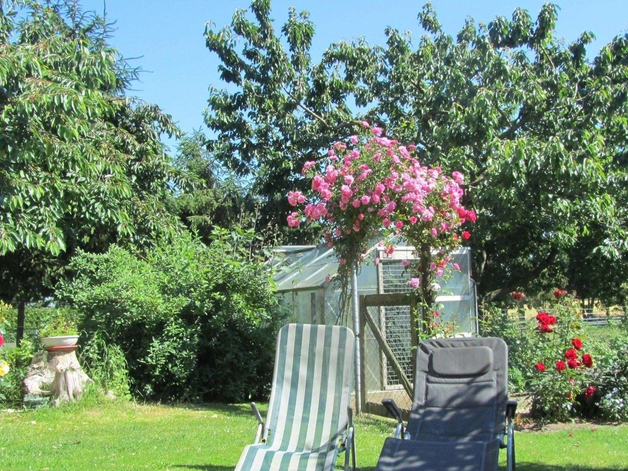 Im Garten gibt es einen Grillplatz mit Schwenkgrill.