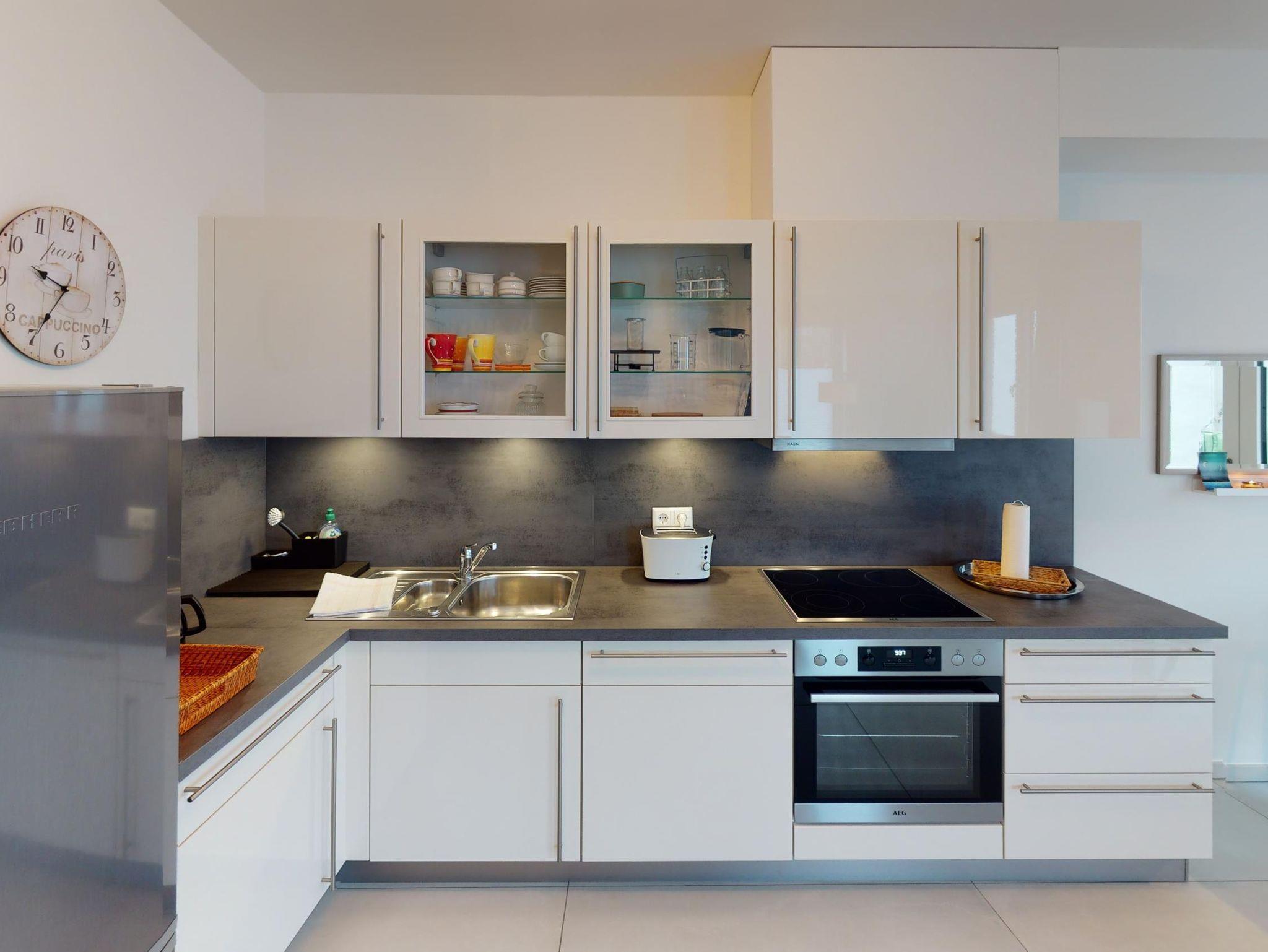 Die voll ausgestattete Küche mit Essplatz bietet Ihnen alles, was Sie benötigen, um Ihre kulinarischen Kreationen zuzubereiten. Ein Flur mit Garderobe und ein Badezimmer mit Dusche und WC sorgen für zusätzlichen Komfort.