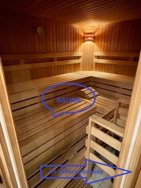Im Untergeschoss des Hauses befinden sich ein großer Fitnessraum mit verschiedensten Geräten, sowie unsere Sauna.