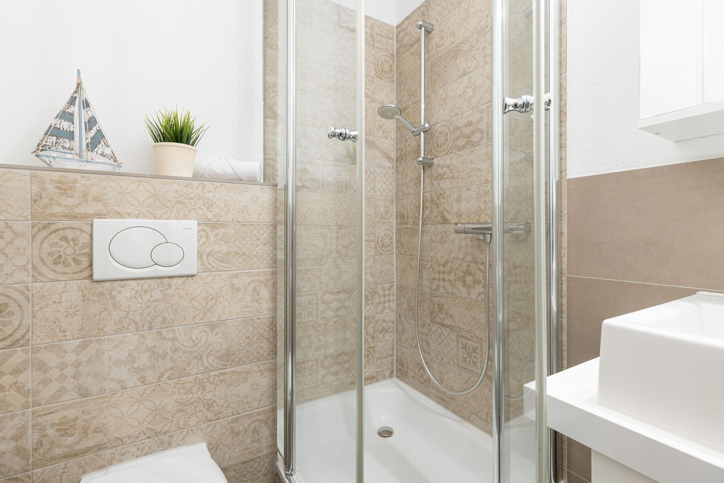 Vom großzügigen Flur gelangen Sie in den geschmackvoll eingerichteten, kombinierten Wohn- Essbereich. Das helle und freundliche Wohnzimmer mit der offenen Wohnküche ermöglicht, einen tollen Urlaub. Die Sofaecke lädt nach langen Strandspaziergängen zum Relaxen ein und wird bei Bedarf mit nur einem Handgriff zu einer komfortablen Schlafmöglichkeit (ca. 140 cm breit). Im Küchenbereich befindet sich eine separate Essecke, die zum gemeinsamen Essen und zu Spieleabende einlädt. Das Schlafzimmer ist nicht sehr groß. Das hochwertige Doppelbett (180x200 cm) reicht von Wand zu Wand und bietet alle Voraussetzungen für einen erholsamen Schlaf. Das Duschbad ist hell, freundlich und frisch gestaltet. Strand, Schwimmhalle, Hafen, Marine-Ehrenmal, U-Boot und das Ortszentrum sind in wenigen Minuten zu Fuß erreichbar.
