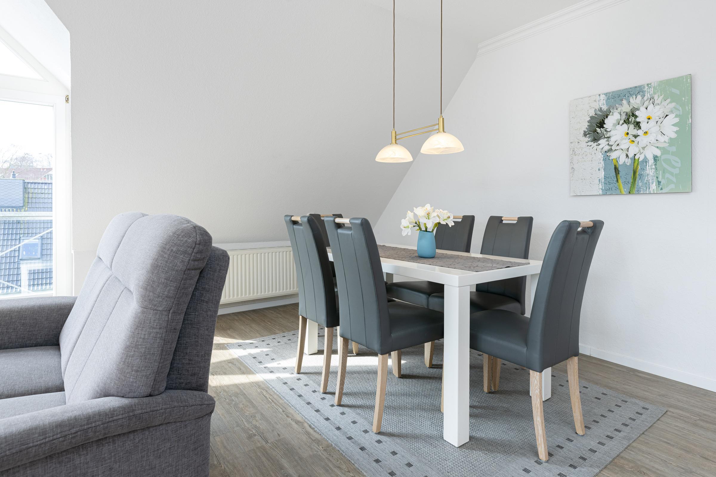 Helle, ca. 85 m² große 3-Zimmer-Ferienwohnung für bis zu 4 Personen im 2. Stock mit Balkon in ruhiger Lage und Nähe zum Laboer Hafen.