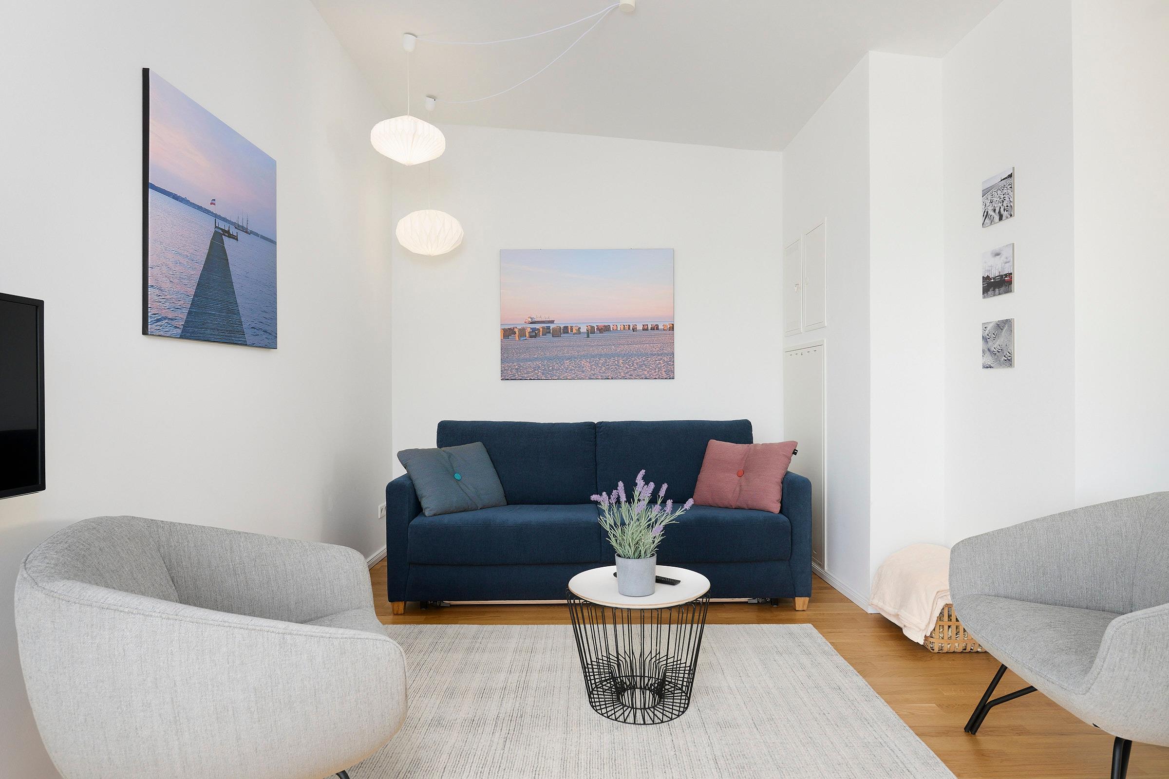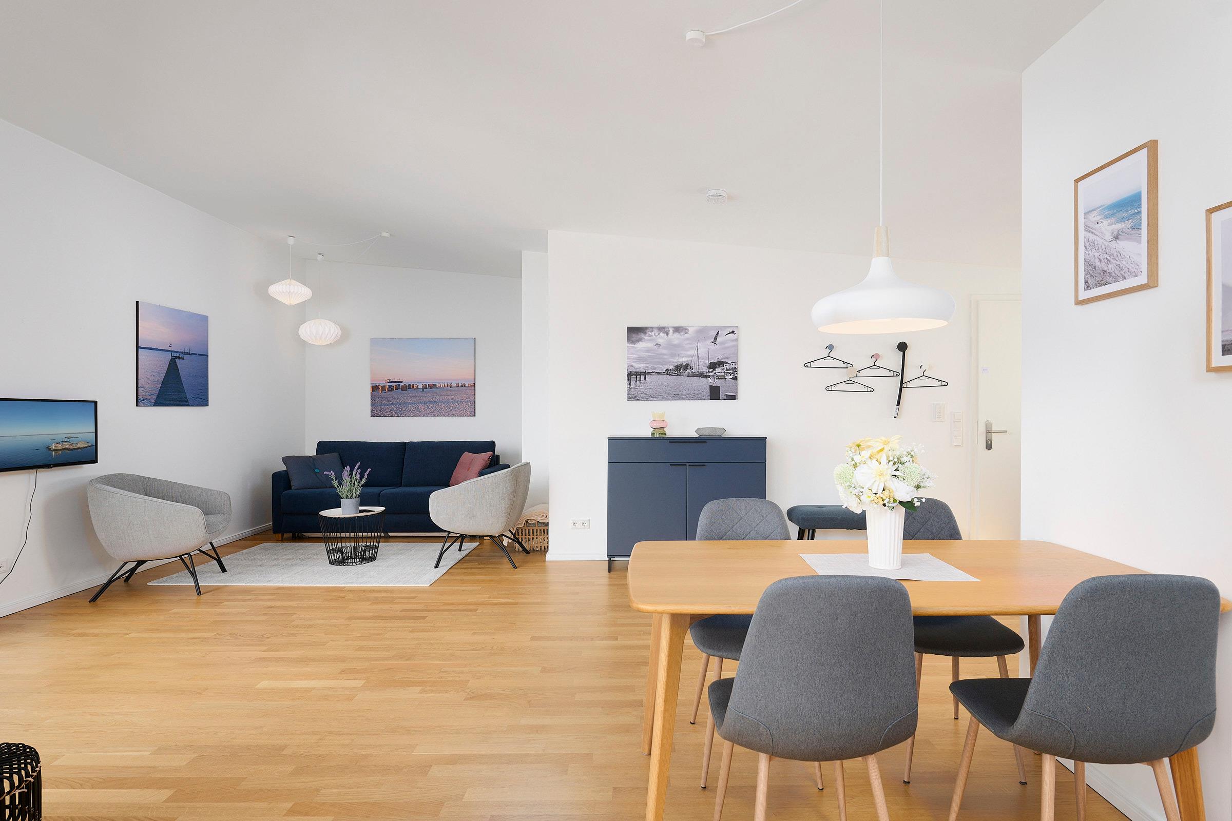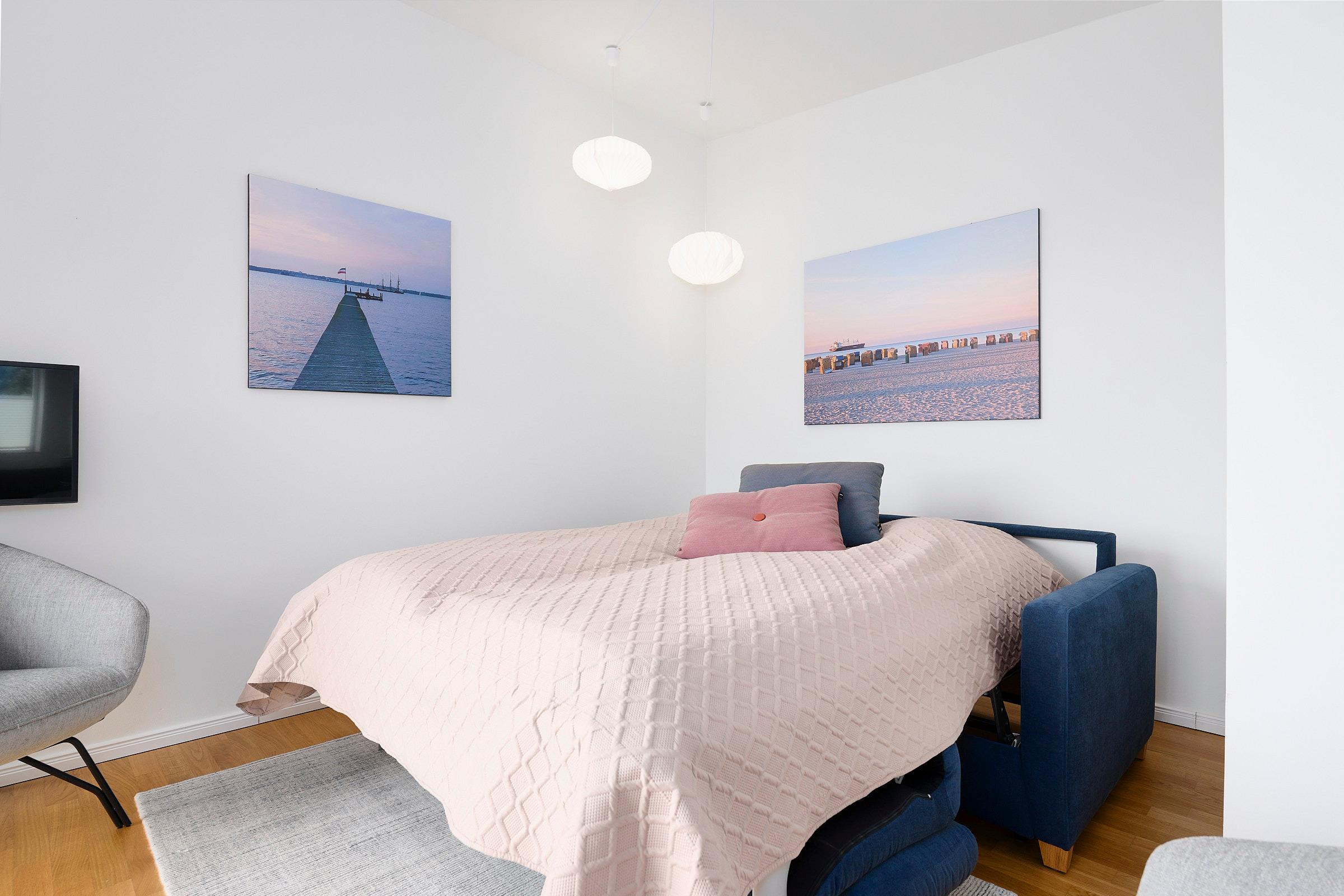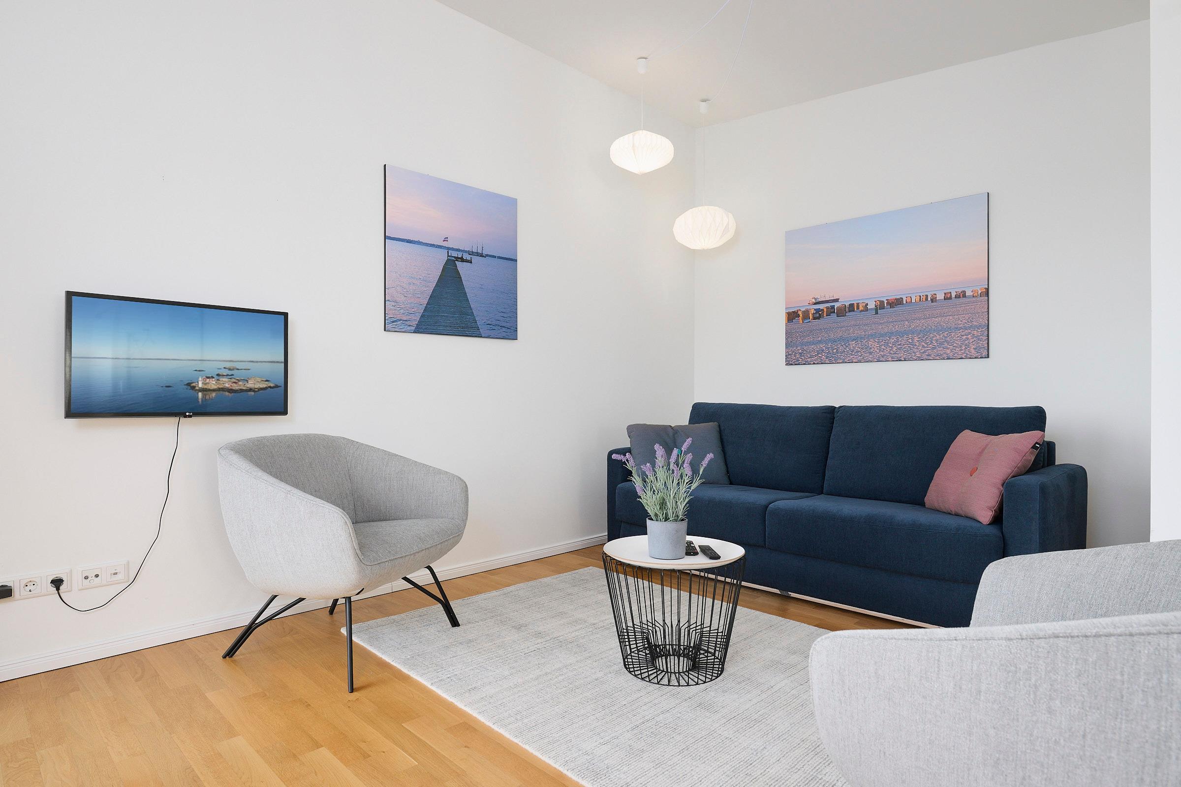 In diesem modernen, etwa 65m² großen Ferienappartement in der Nähe des Yachthafens Baltic Bay dürfen sich bis zu 4 Personen ganz besonders über einen atemberaubenden Blick auf die Kieler Förde freuen.