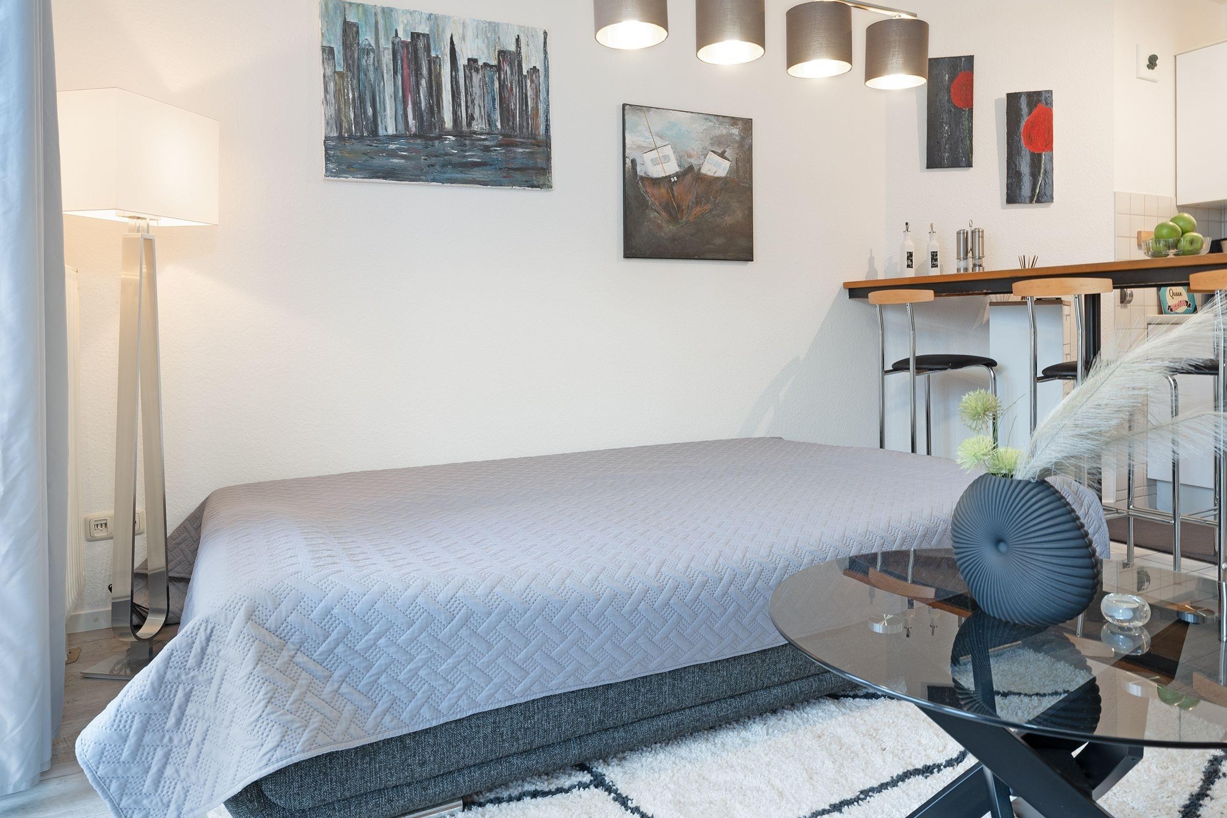 Erleben Sie die Ostseeküste hautnah und genießen Sie Ihre Auszeit in dieser charmanten Ferienwohnung in Laboe, die mit ihrer Nähe zur Ostseeküste punktet und gleichzeitig modernen Komfort bietet. Der lichtdurchflutete Wohnbereich lädt mit gemütlichen Sitzmöglichkeiten und einem TV zu entspannten Abenden ein. Vom Wohnbereich gelangen Sie direkt auf den überdachten Balkon, der mit Gartenmöbeln und einem Strandkorb ausgestattet ist und Ihnen die Möglichkeit bietet, die frische Ostseeluft zu genießen. Die gut ausgestattete Küche verfügt über einen 2-Platten-Herd, Mikrowelle, Kaffeemaschine, Wasserkocher und Mixer, sodass Sie hier Ihre Lieblingsgerichte problemlos zubereiten können. Der Essbereich, der sich harmonisch in den Wohnraum integriert, bietet Platz für gemeinsame Mahlzeiten. Das Schlafzimmer ist mit einem komfortablen Doppelbett (180x200 cm) ausgestattet, das Ihnen eine erholsame Nachtruhe garantiert. Verdunklungsmöglichkeiten sorgen dafür, dass Sie auch im Sommer tief und entspannt schlafen können. Im Wohnzimmer befindet sich ein Schlafsofa (ca. 150x200 cm), auf dem ein Erwachsener und ein Kind nächtigen können. Das Badezimmer ist samt Dusche und Haartrockner mit allem ausgestattet, um sie frisch in den Urlaubstag starten zu lassen.