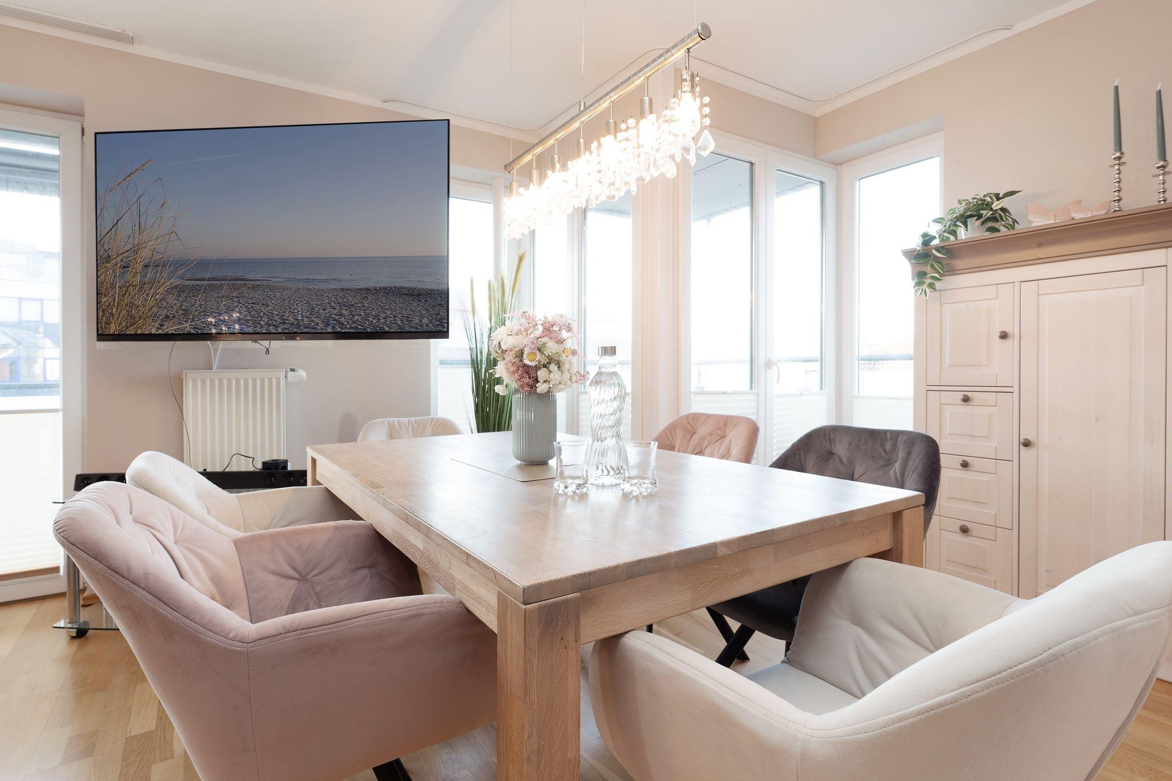 Über den leistungsfähigen Glasfaseranschluss können Sie bequem arbeiten oder im Internet surfen. Alle drei Fernseher sind internetfähig und bieten Zugriff auf NETFLIX und Mediatheken. Mit "Alexa" lassen Sie sich den Wetterbericht ansagen, Nachrichten vorlesen oder Ihren Lieblingsradiosender spielen. Ein moderner Elektrogrill sorgt auf dem Balkon für entspannte Grillmomente – natürlich mit Ostseeblick.