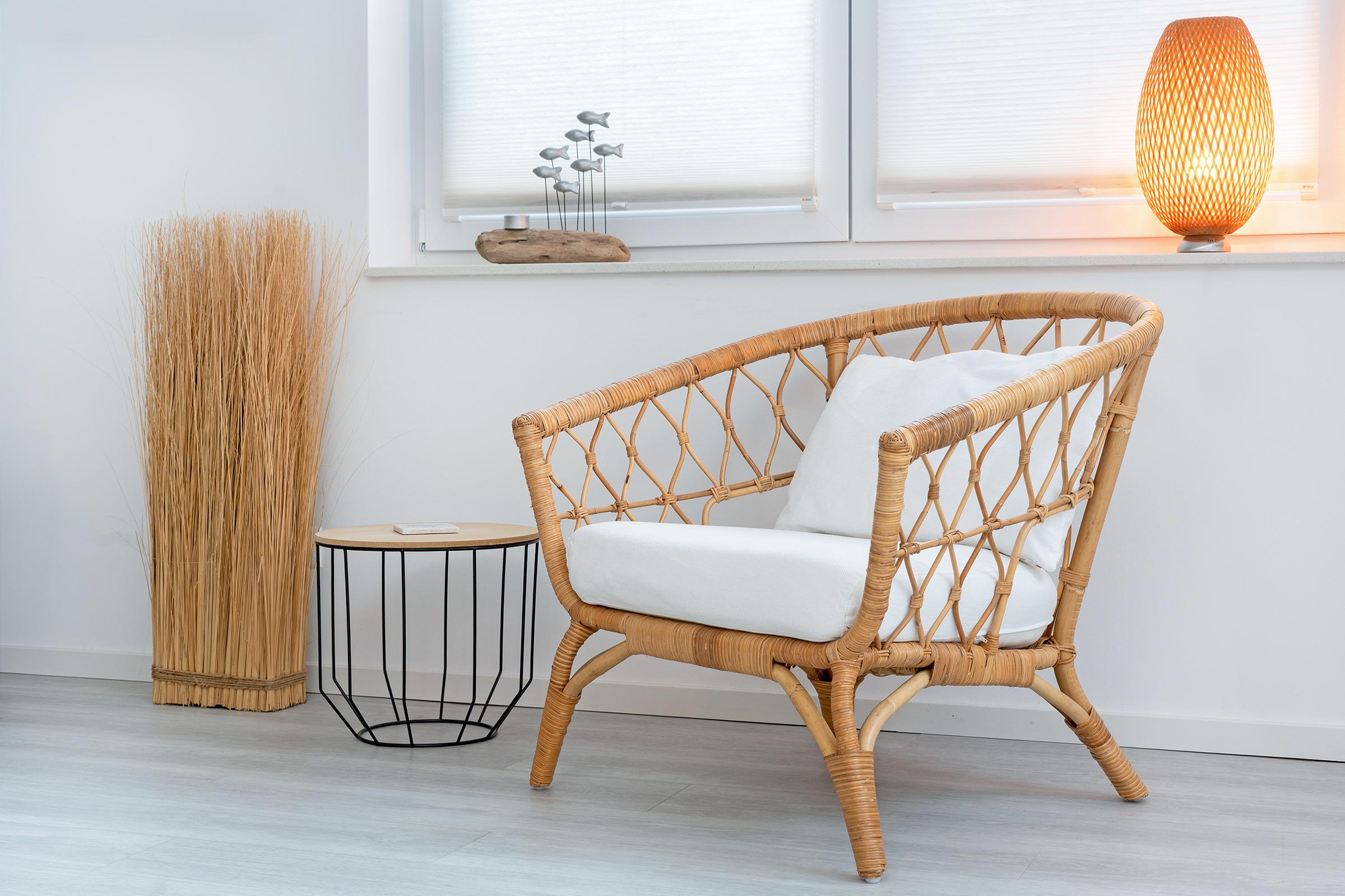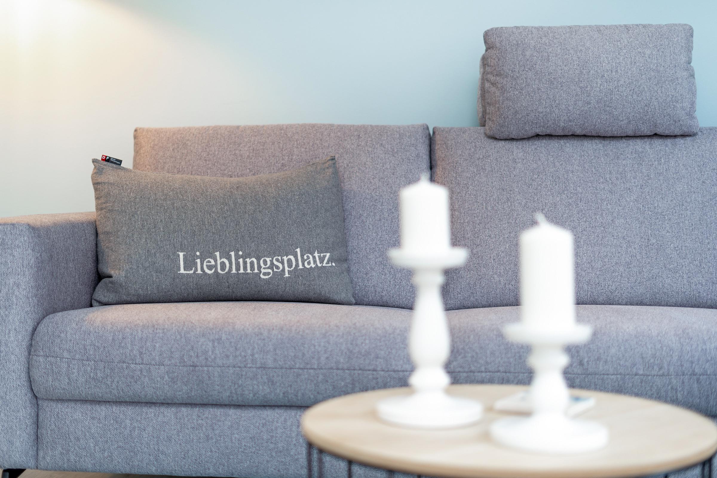 Der stilvoll eingerichtete Wohnbereich verfügt über eine gemütliche Sofaecke, TV, sowie Zugang zu beiden Balkonen mit Gartenmöbeln – hier genießen Sie zu jeder Tageszeit sonnige Stunden mit Blick Richtung Meer.