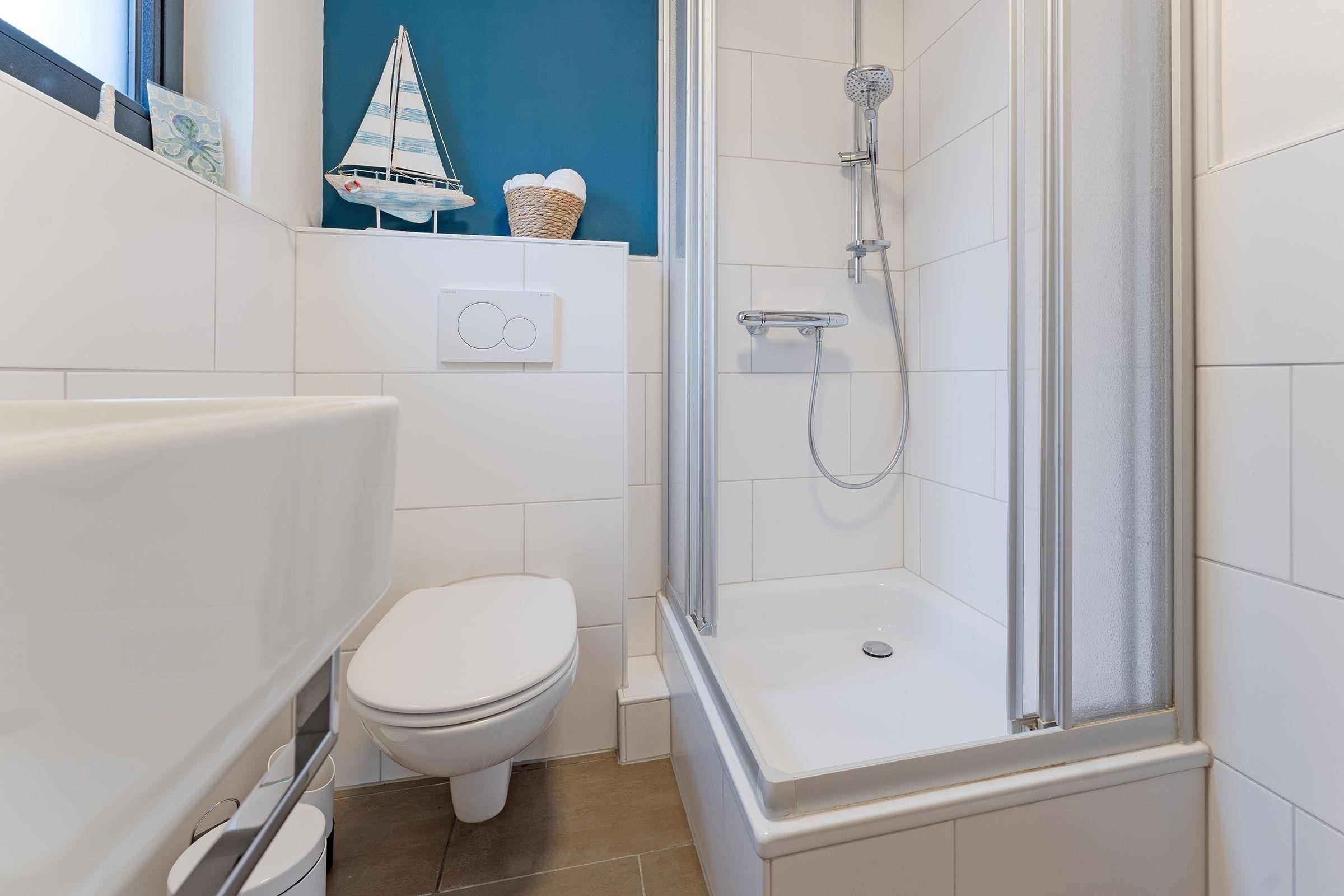 Diese stilvoll eingerichtete Doppelhaushälfte erstreckt sich über zwei Etagen und bietet den idealen Rahmen für einen entspannten Ostseeurlaub. Der helle Wohnbereich verfügt über ein Schlafsofa (ca. 140x200 cm), Kaminofen, Flachbild-TV und Bluetooth-Lautsprecher. Die möblierte Terrasse mit Grill lädt zum Verweilen ein.