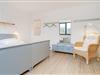 Im Obergeschoss befinden sich zwei Schlafzimmer sowie eine Empore mit Schreibtisch und Schlafsessel. Ein Duschbad im Erdgeschoss sowie ein Bad en Suite sorgen für Komfort.